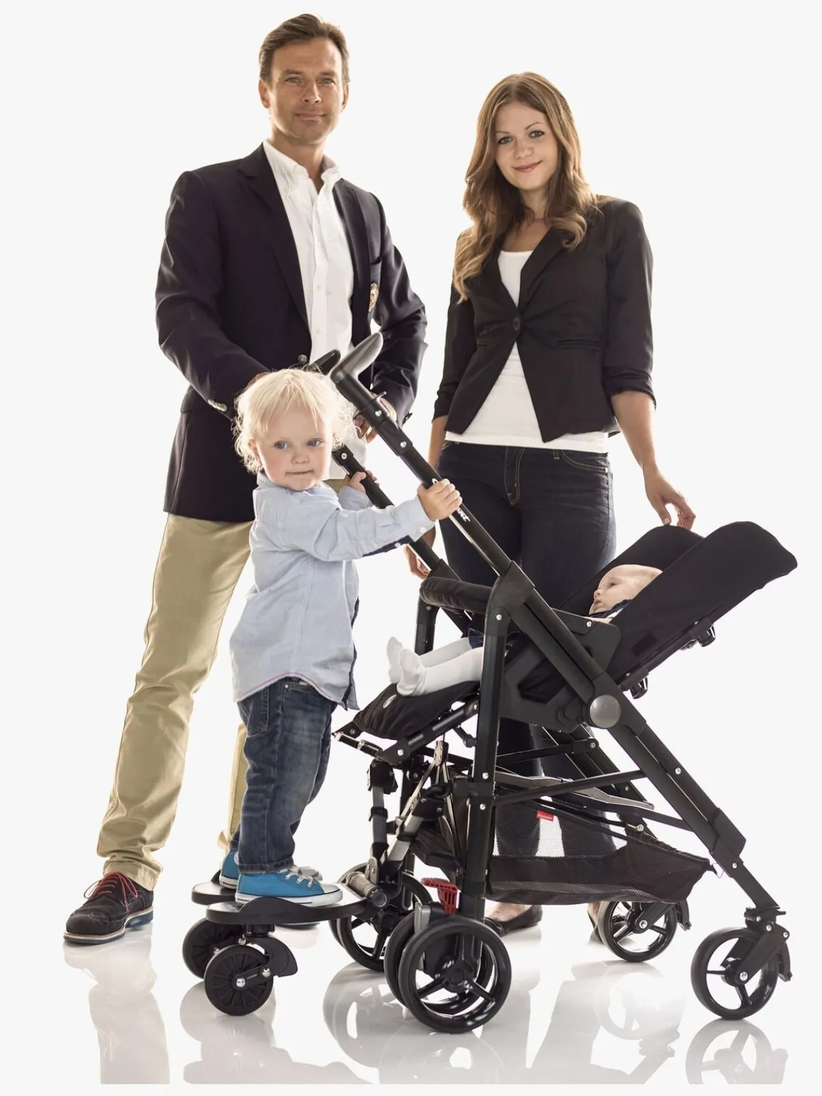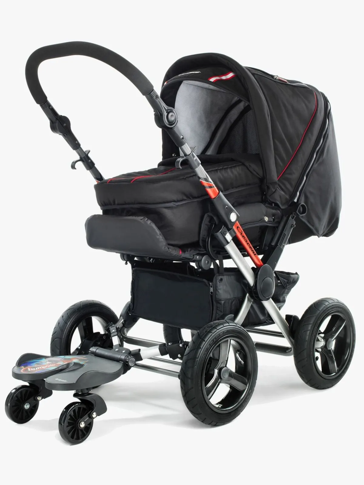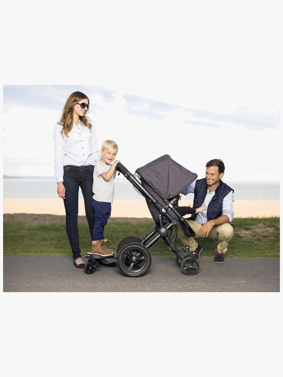 En afbalanceret affjedringsteknik giver barnet en jævn og behagelig ståplads, selv på ujævnt underlag, og det sættes fast på barnevognen med et snuptag. Lettere bliver det ikke!