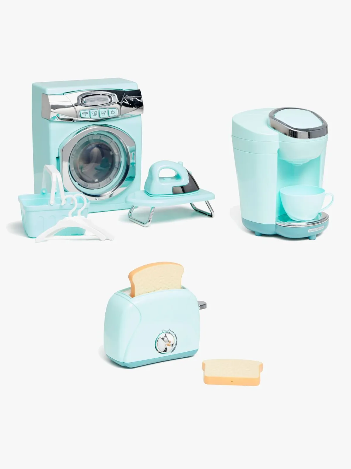 Med i pakken følger også en kaffemaskine med tilhørende kop, samt en brødrister med to skiver plastiktoast.