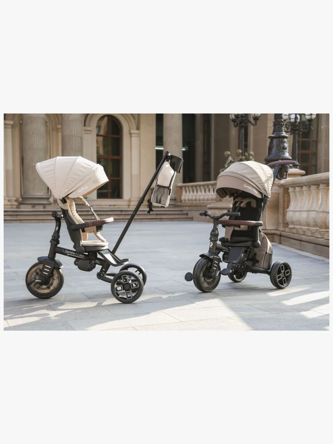 – Stabil trehjulskonstruktion med sammenklappelige baggafler.
