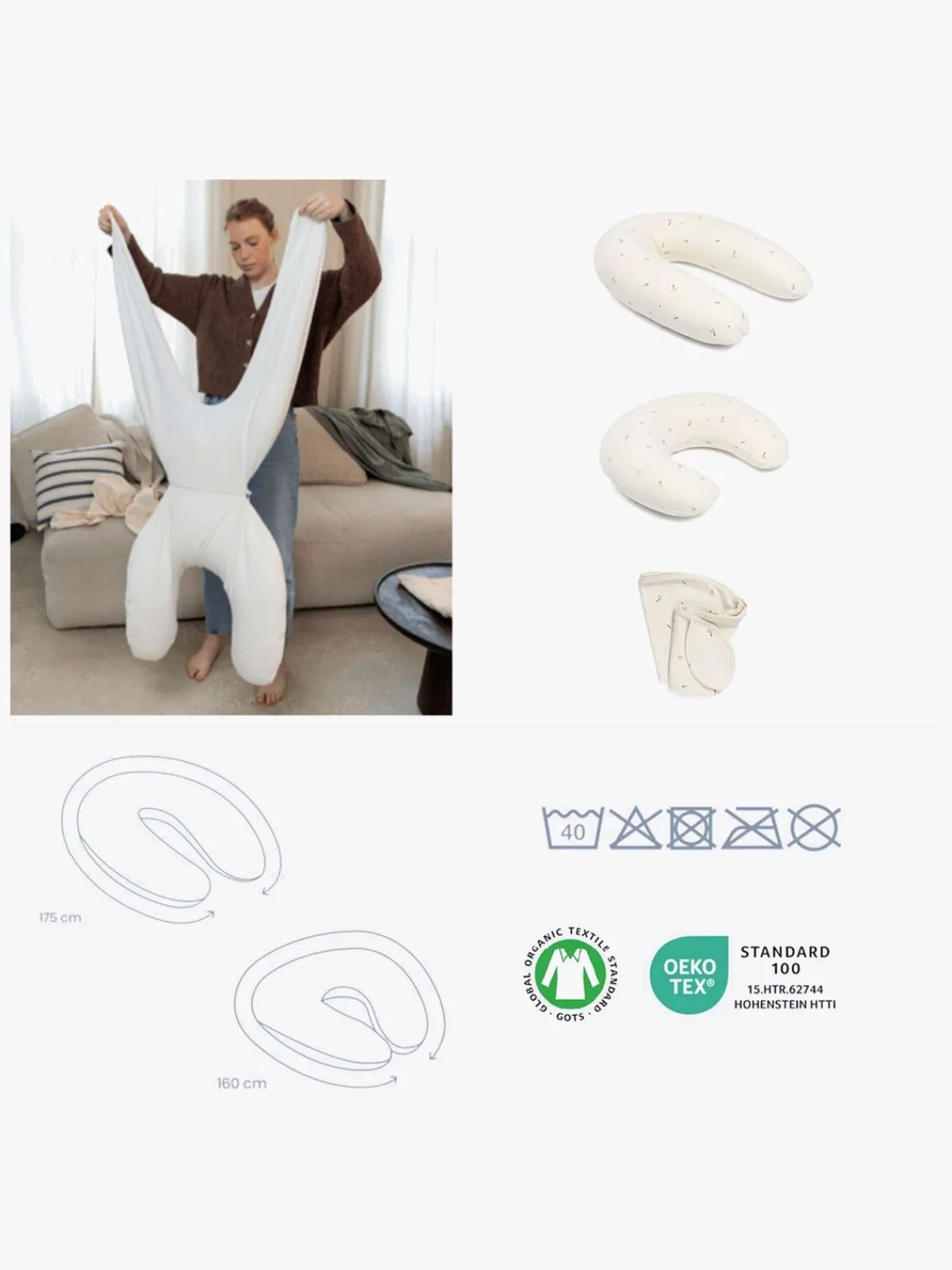 – Betræk: 95 % økologisk bomuld, 5 % elastan.