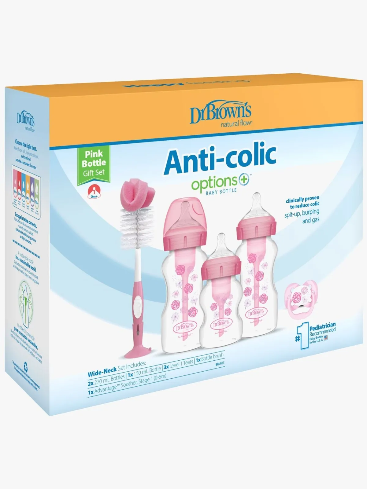 – Indeholder: 2 sutteflasker på 270 ml, 1 sutteflaske på 150 ml, 1 flaskebørste, 1 sut.