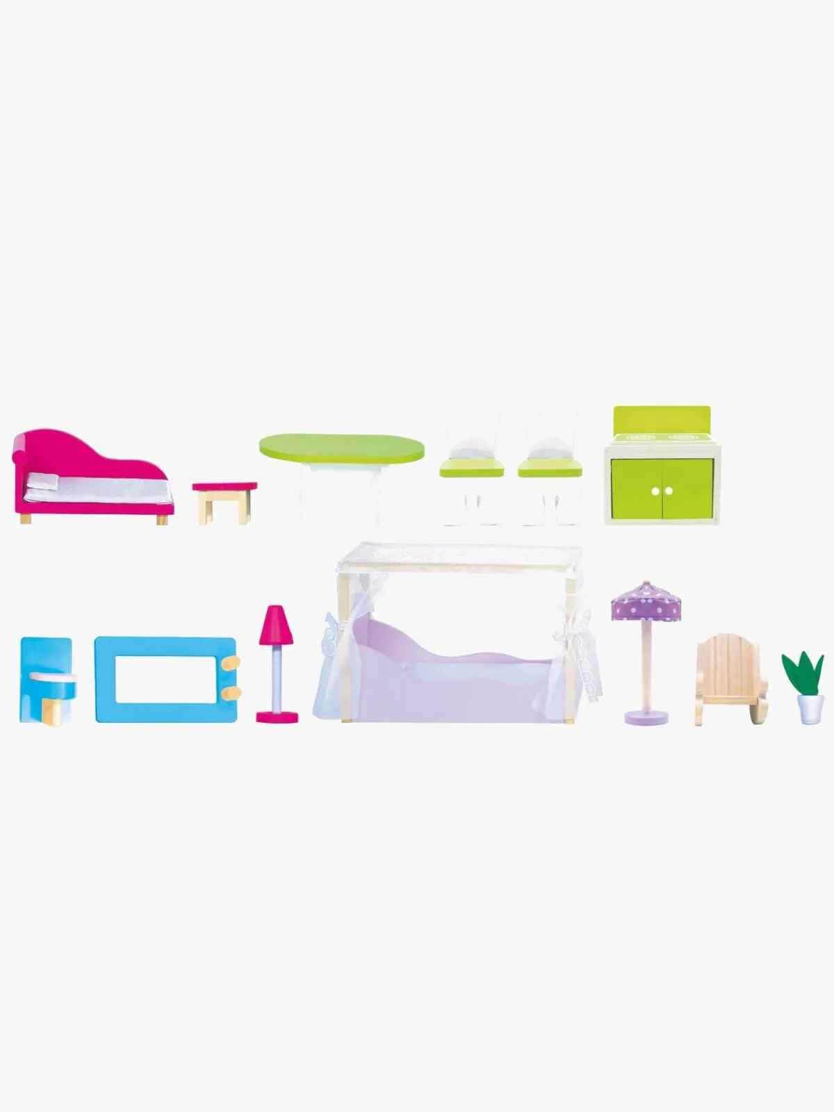 – Komplet møbelsæt til dukkehus.