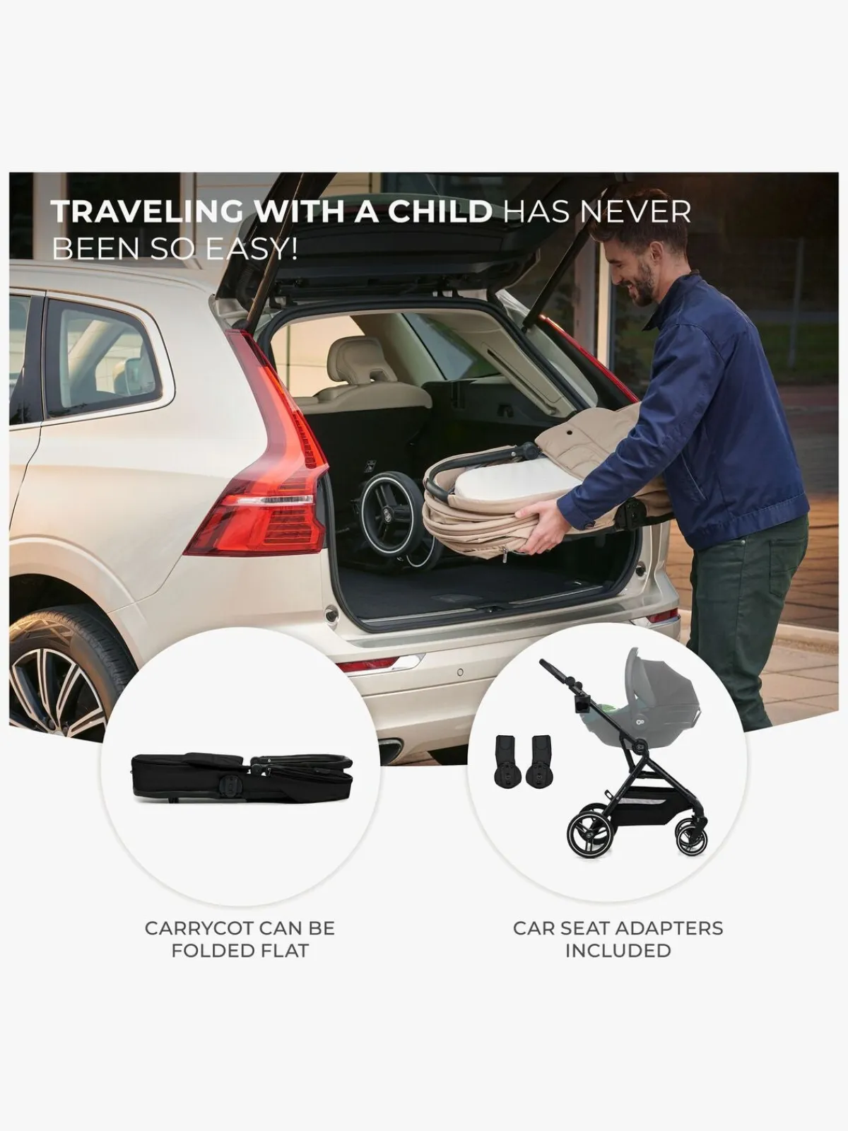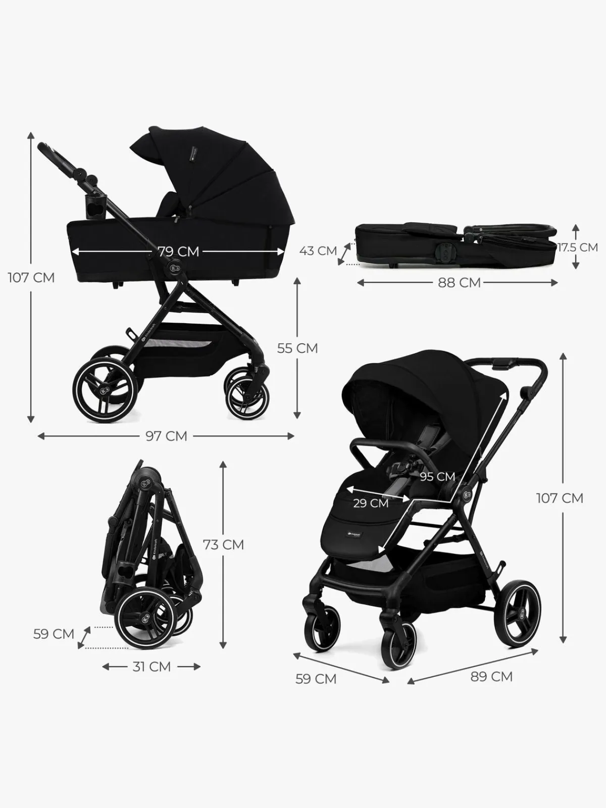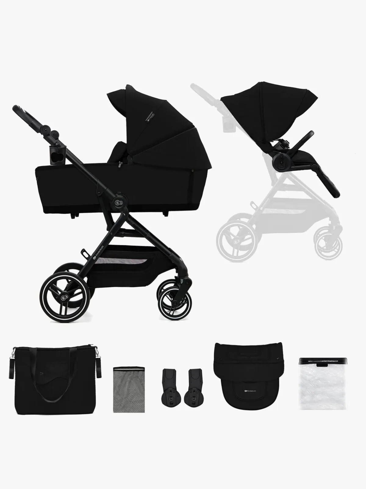 – Inkluderer: regnslag, myggenet, kørepose, kopholder, pusletaske, autostolsadapter.