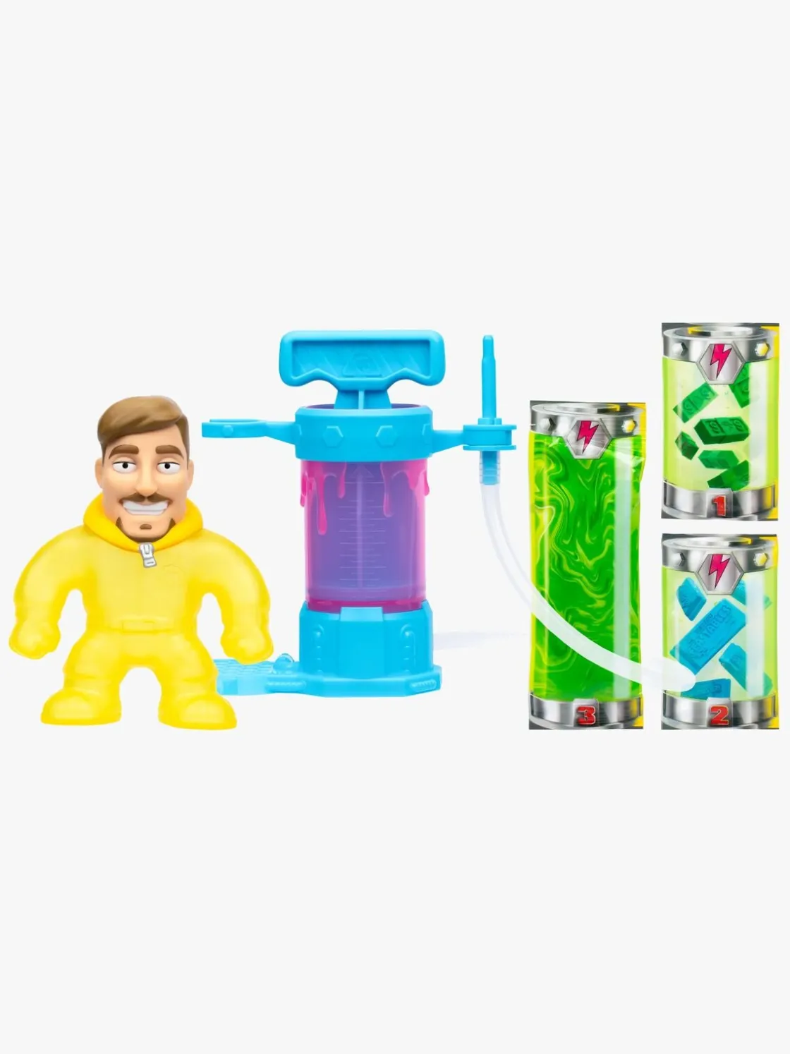 – Indeholder: 1 skabelsesstation, 1 MrBeast strækbar figur, 1 slimepose.