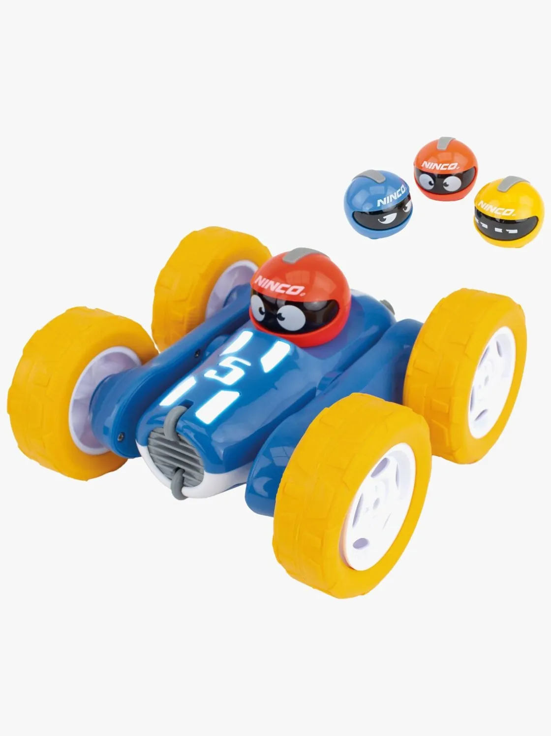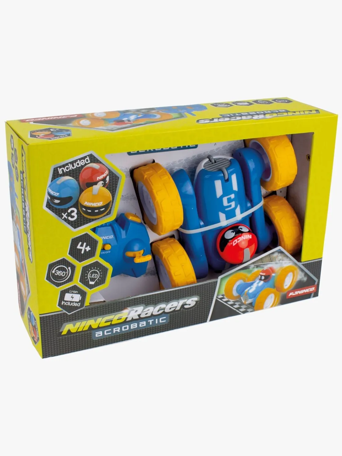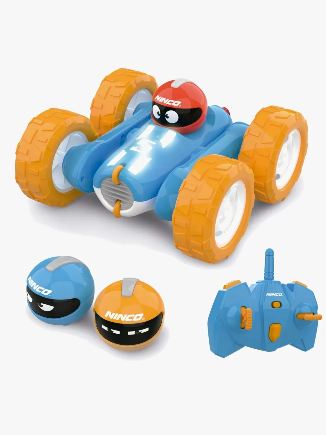 – Indeholder: 1 fjernstyret bil, 1 fjernbetjening, 3 hjelme.