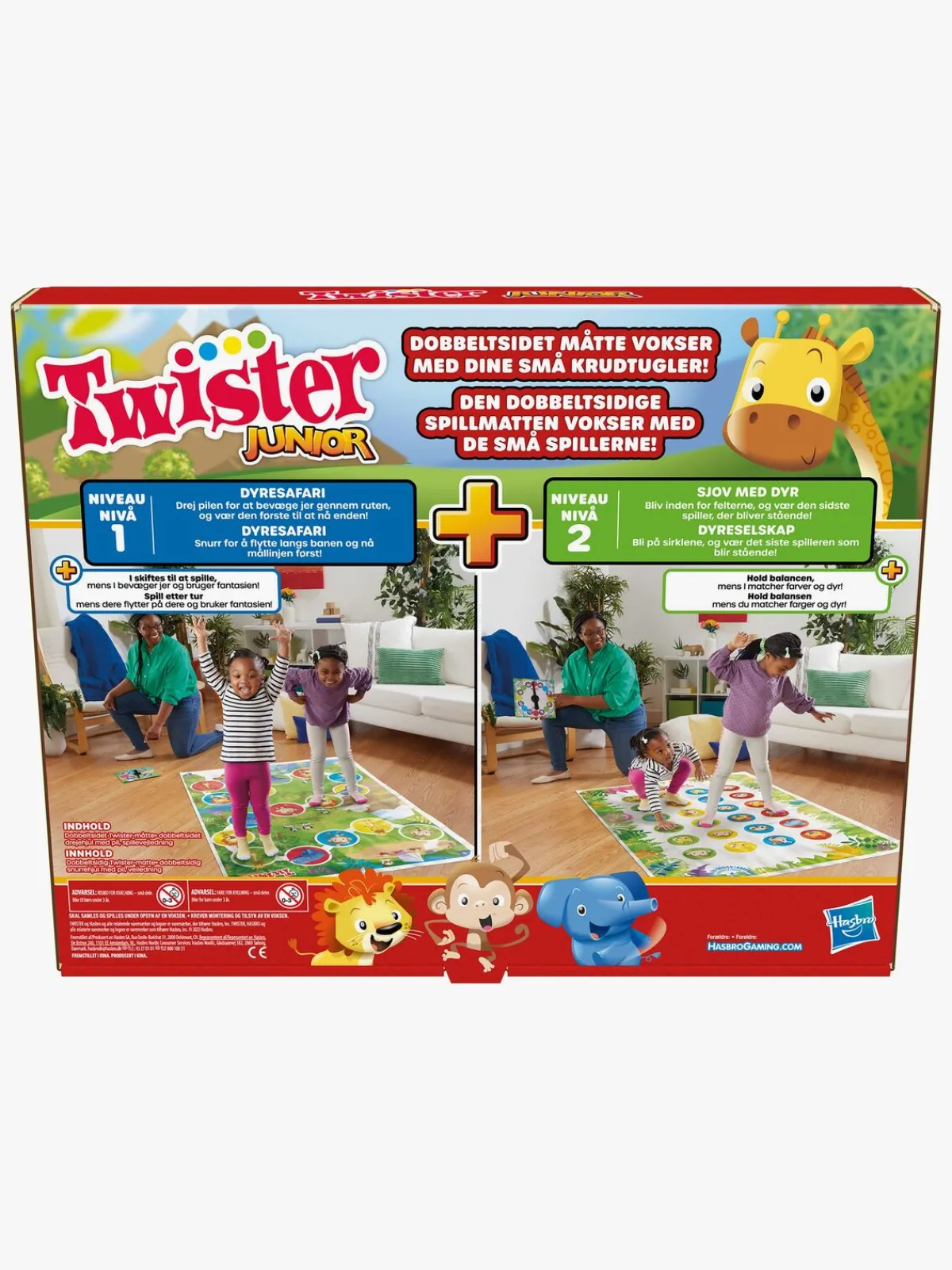 Den spiller, der som den sidste bliver på legetæppet, vinder! Twister Junior-spillet er sjovt for hele familien – en perfekt indendørsaktivitet.