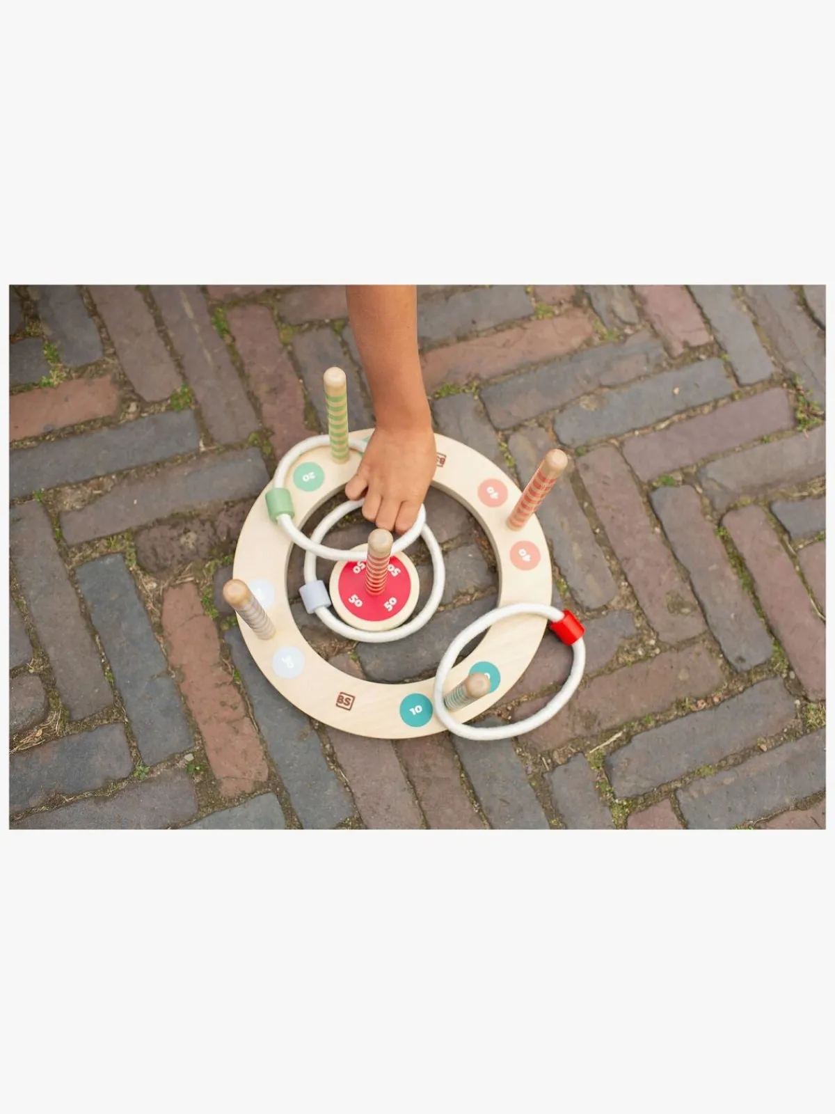– Indeholder: 1 base, 5 ringe, 5 pinde.