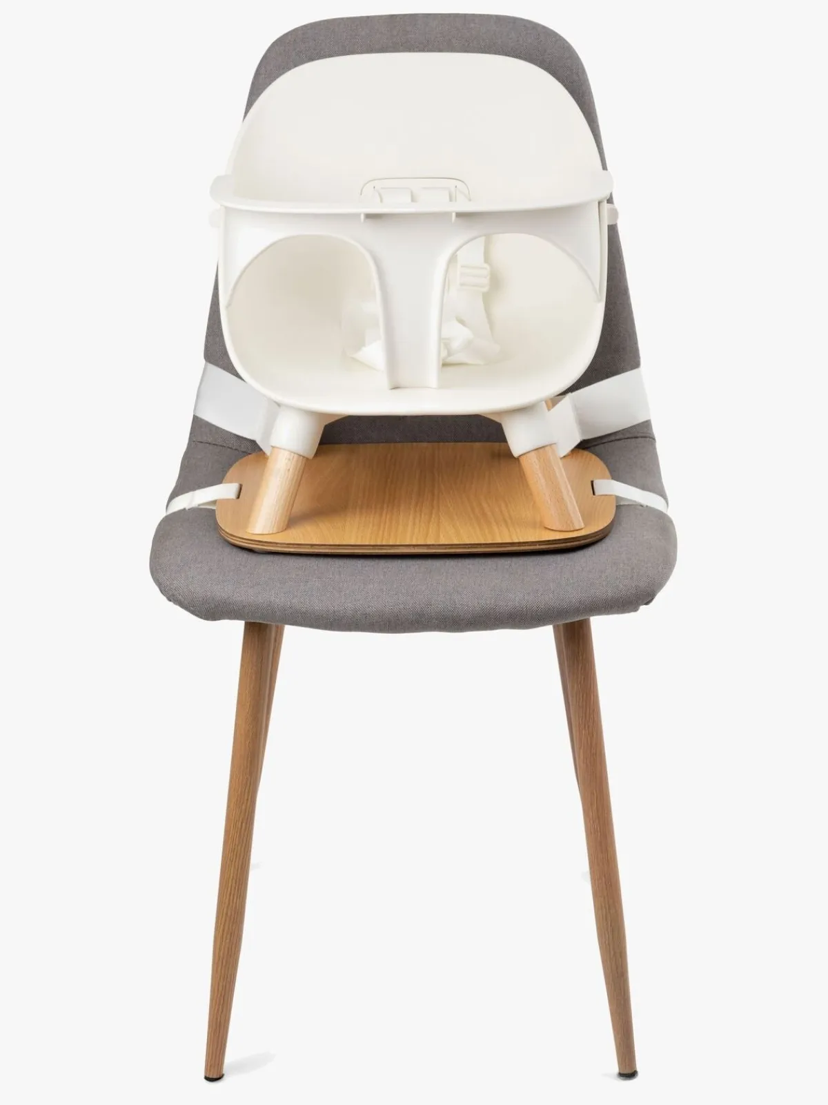 – Barnesædet sættes fast med bundpladens to stropper og passer til næsten alle standardstole.