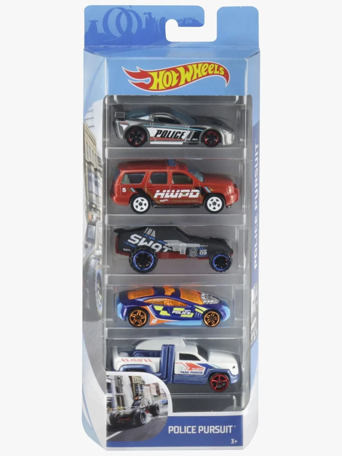 – Indeholder Hot Wheels®-biler i målestoksforholdet 1:64.