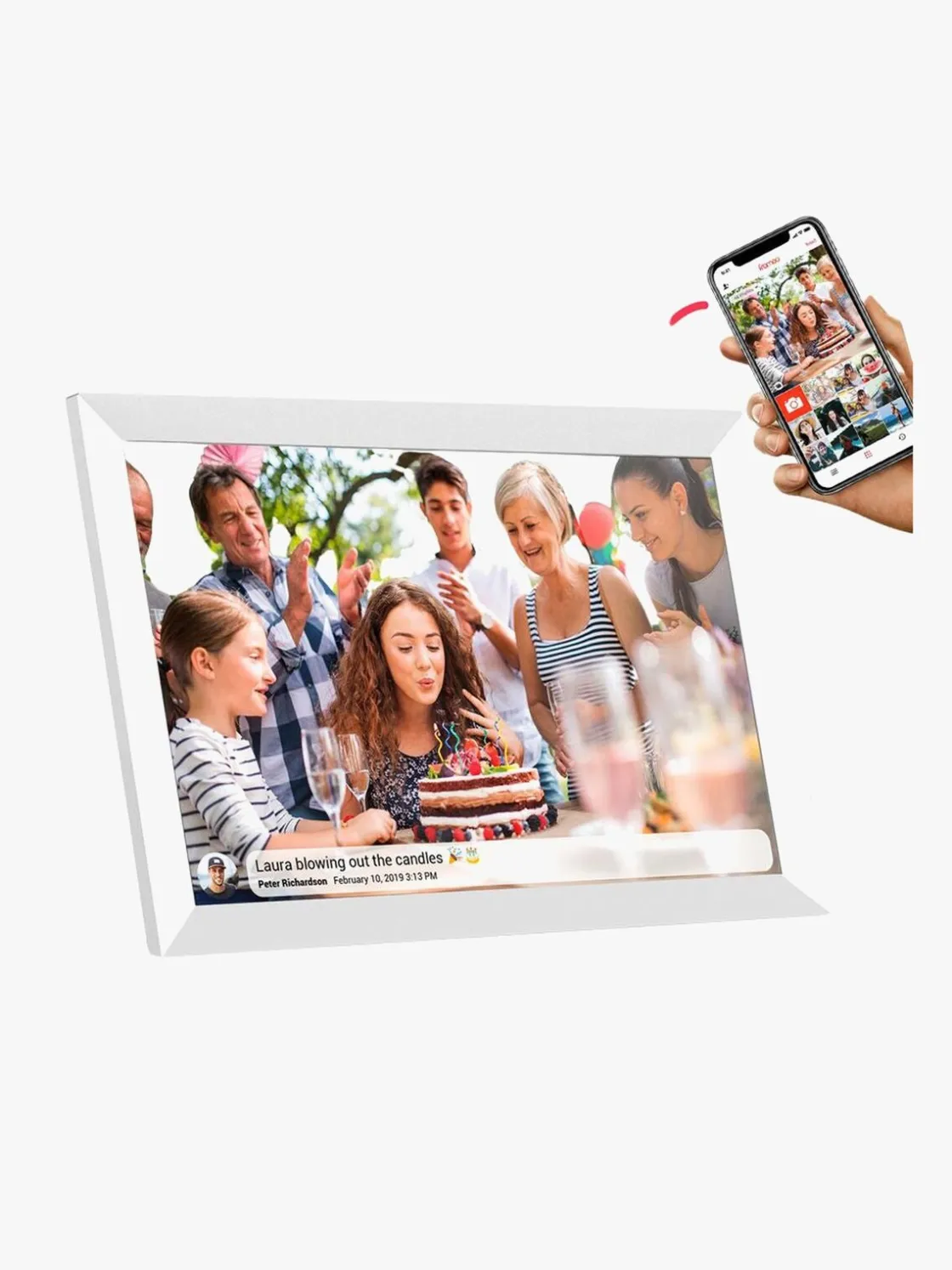 – På blot et par sekunder kan du dele og vise fotos og videoer i fotorammen med venner og familie, der befinder sig hvor som helst i verden.