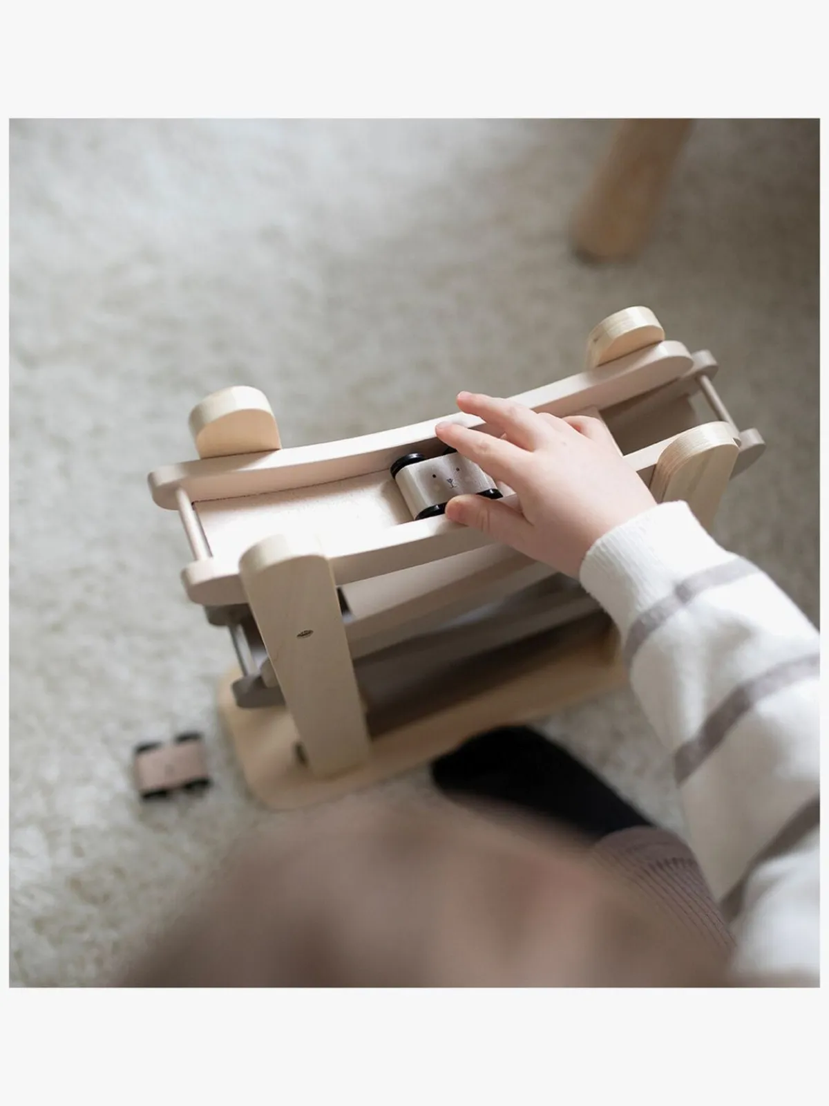 – Placer bilerne øverst, og se dem køre og flippe ned ad racerbanen.
