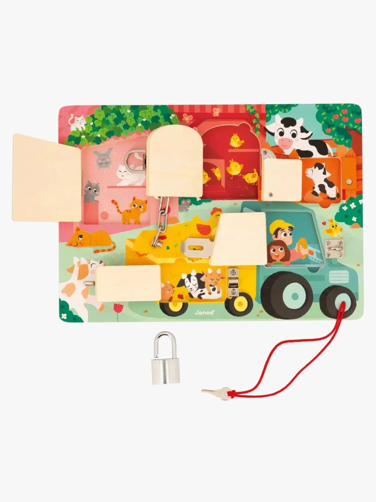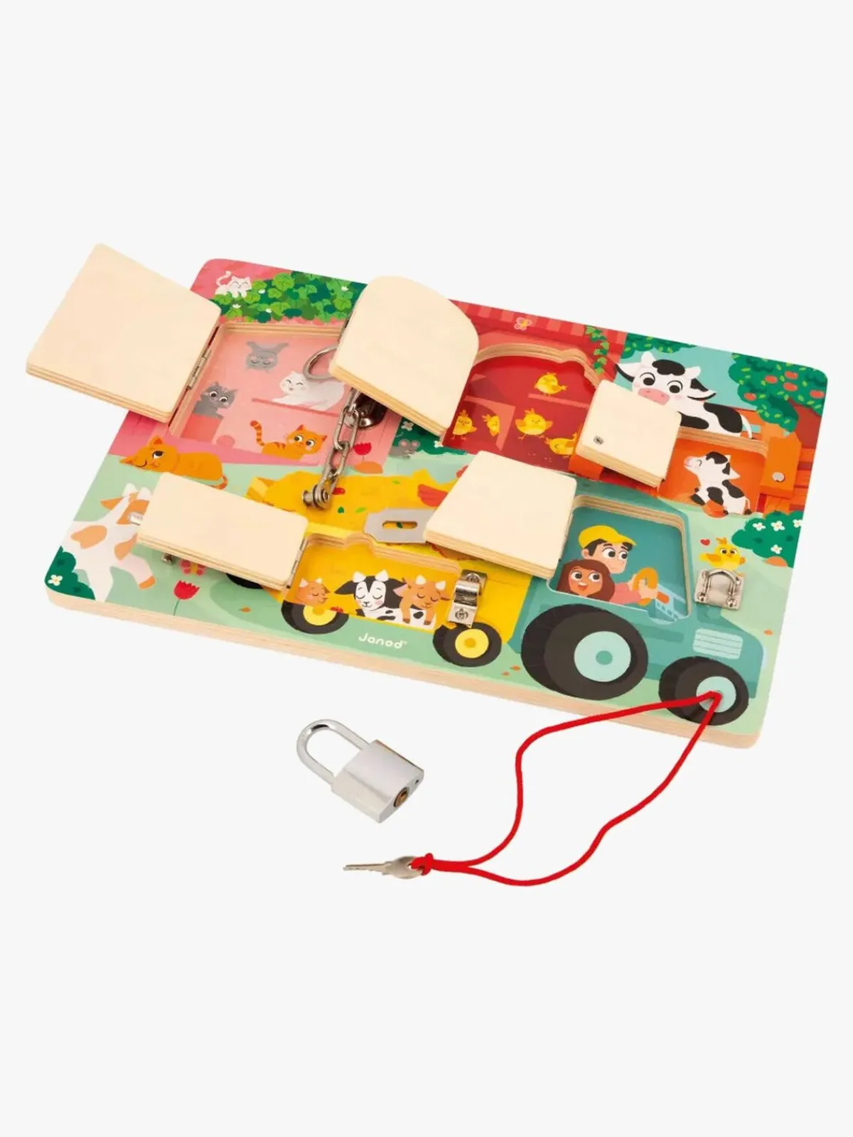 – Nøgle, haspe, dørkæde, spænde og lås.