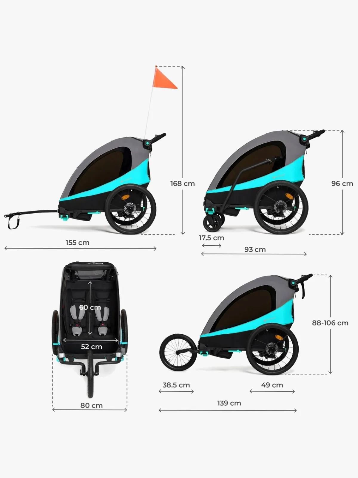 – Inkluderer: regnslag, myggenet, solskærm.