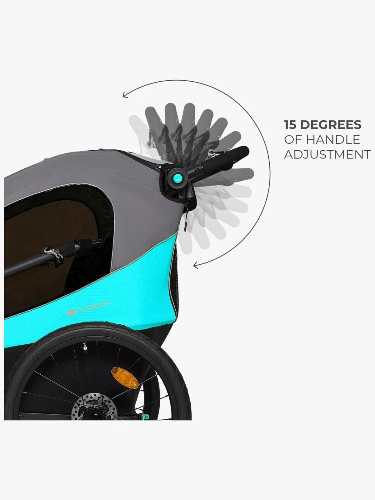 – Den er udstyret med to justerbare 5-punktsseler, så begge børn kan sidde sikkert og komfortabelt på køreturen.
