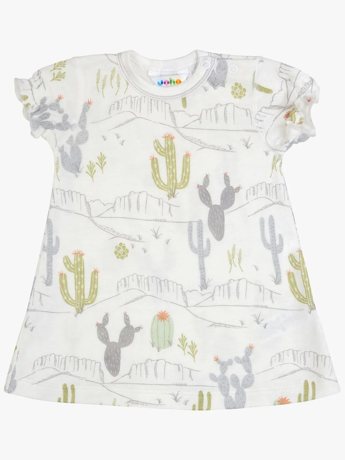 En sød strikket kjole fra Joha til de yngste. Den er lavet i økologisk bomuld med to trykknapper i tiden af kragen og er passer perfekt til hverdag eller festlige sammenkomster. Bomulden er svanemærket, hvilket gør kjolen til et miljøvenligt valg.