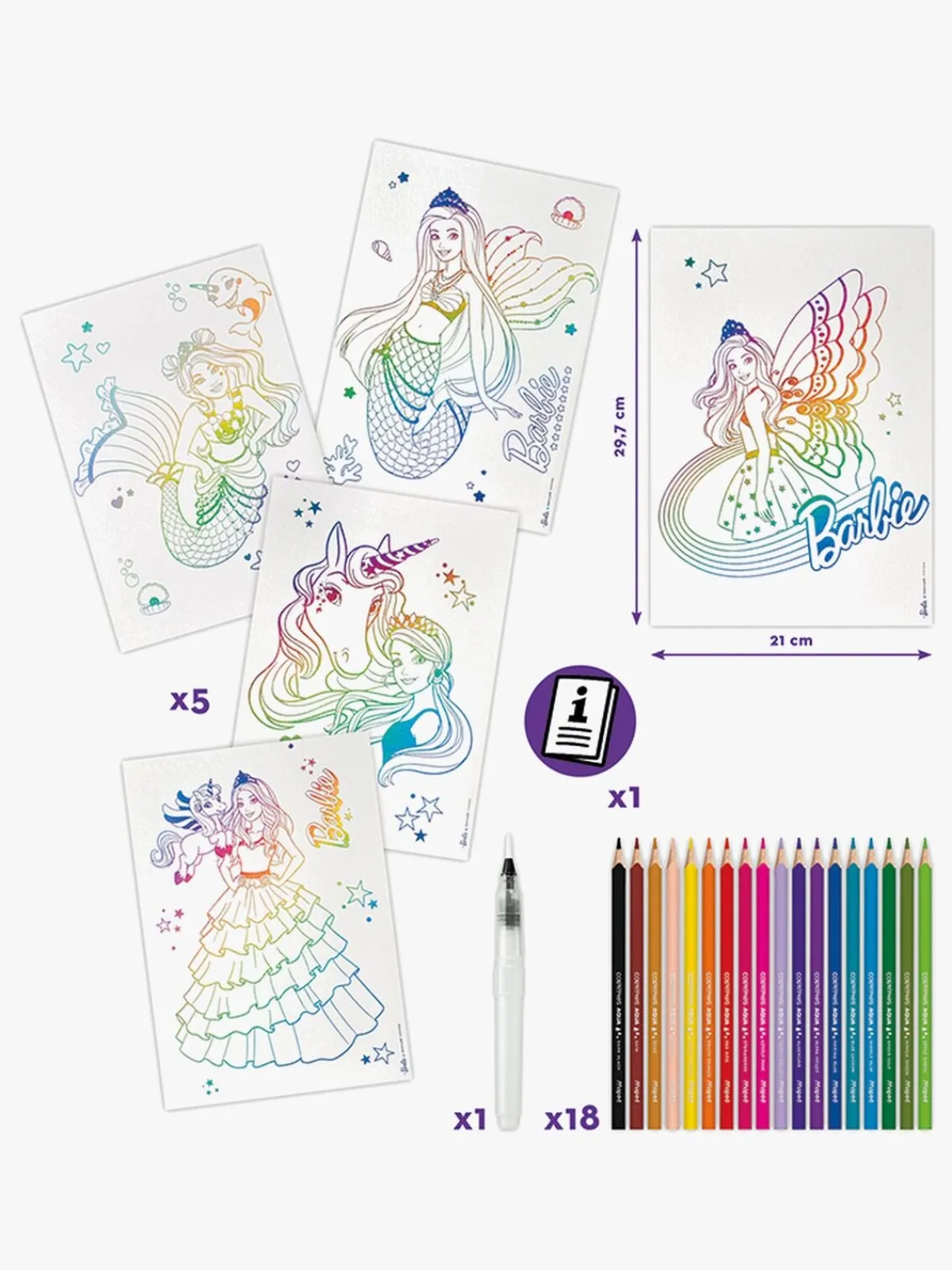 – Indeholder: 5 illustrationer, 18 vandbaserede tusser, 1 pensel.