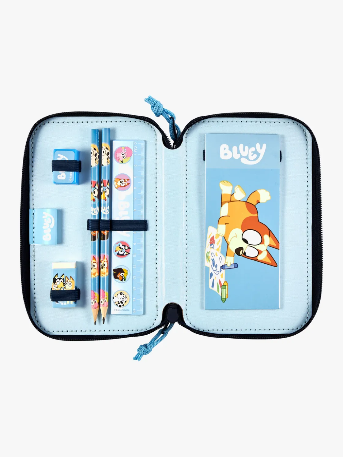 – Indeholder: 1 notesblok, 1 blyantspidser, 1 lineal, 16 farveblyanter, 2 blyanter, 1 viskelæder, 4 klistermærker.