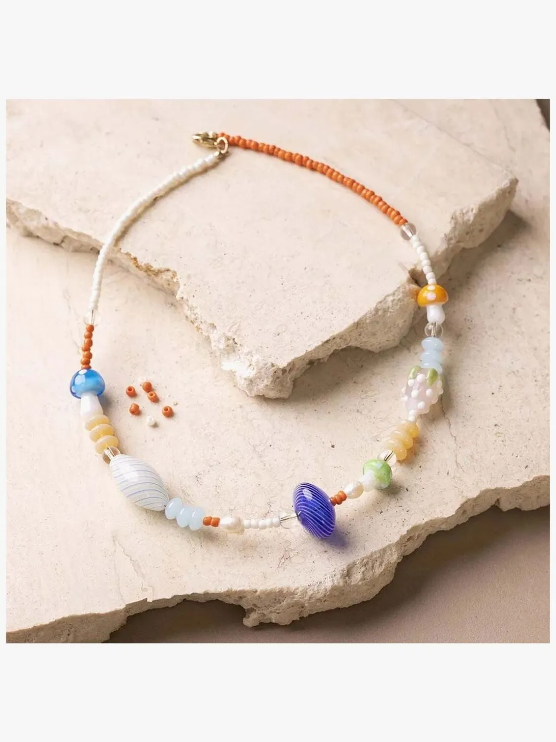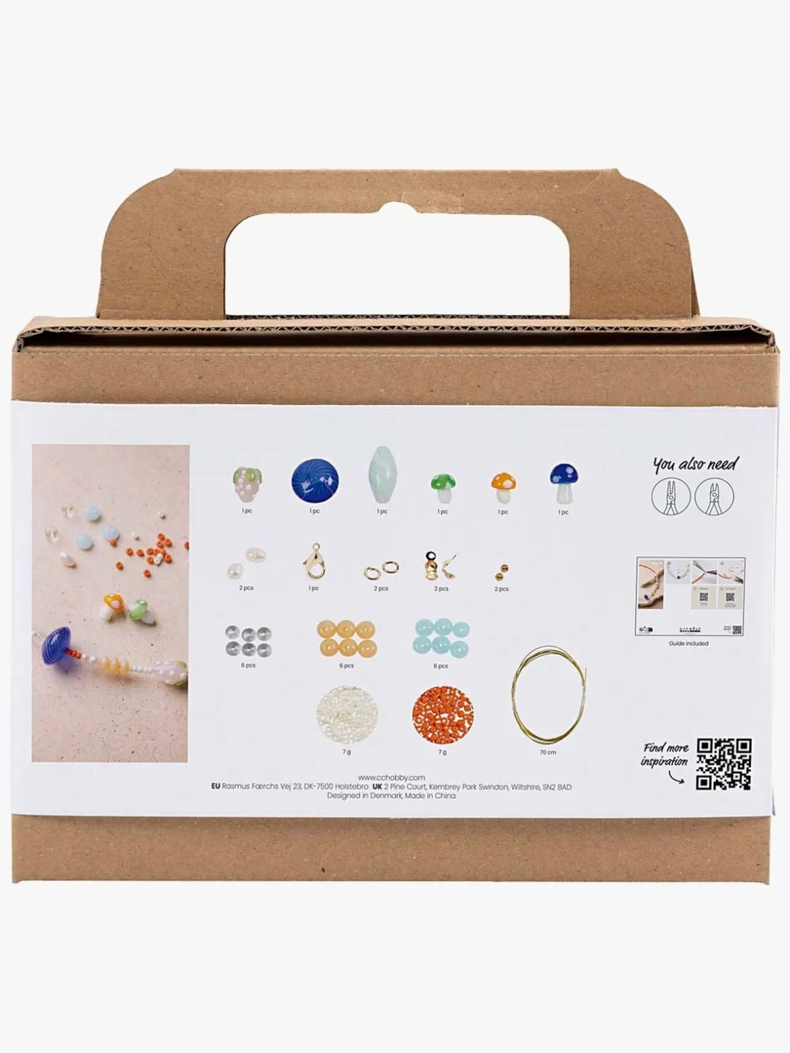 – Indeholder: glasperler, rocailleperler, ferskvandsperler, metaltråd, klips, karabinhage.