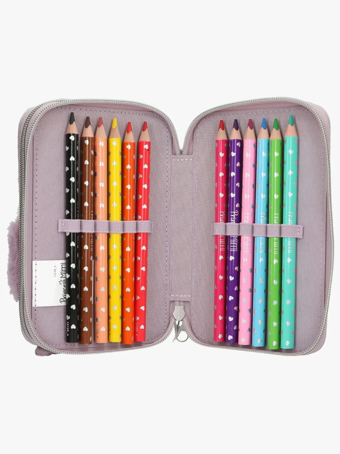 – Indeholder: 1 penalhus, 12 farveblyanter, 2 glitter-gelpene, 1 blyant, 1 saks, 1 limstift, 1 blyantspidser, 1 viskelæder, 1 lineal.