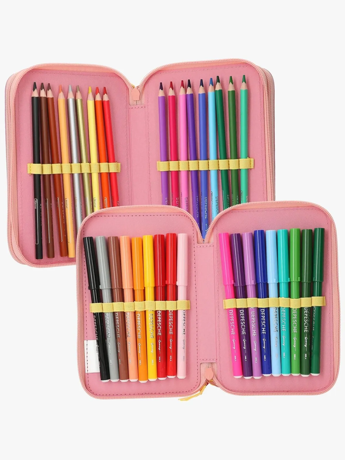 – Indeholder: 1 penalhus, 18 farveblyanter, 18 tusser, 2 blyanter, 1 saks, 1 limstift, 1 blyantspidser, 1 lineal, 1 viskelæder.