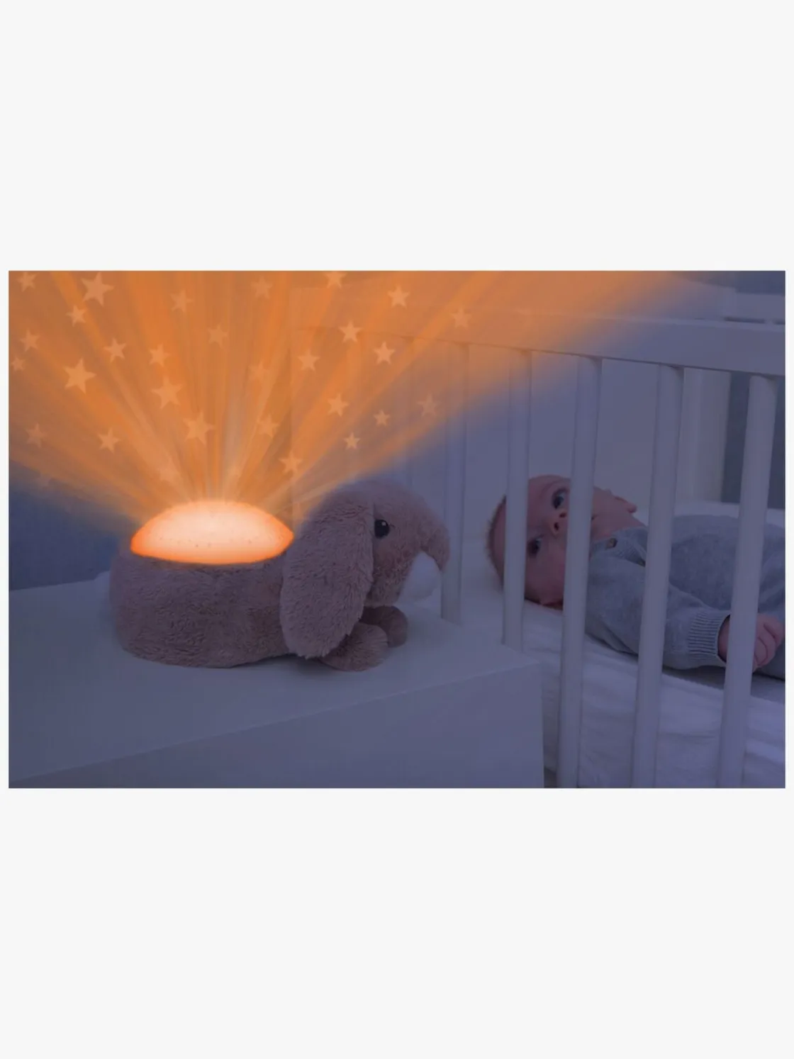 – Projekterer stjerner på loftet i fire forskellige farver: orange, blå, grøn eller flerfarvet.