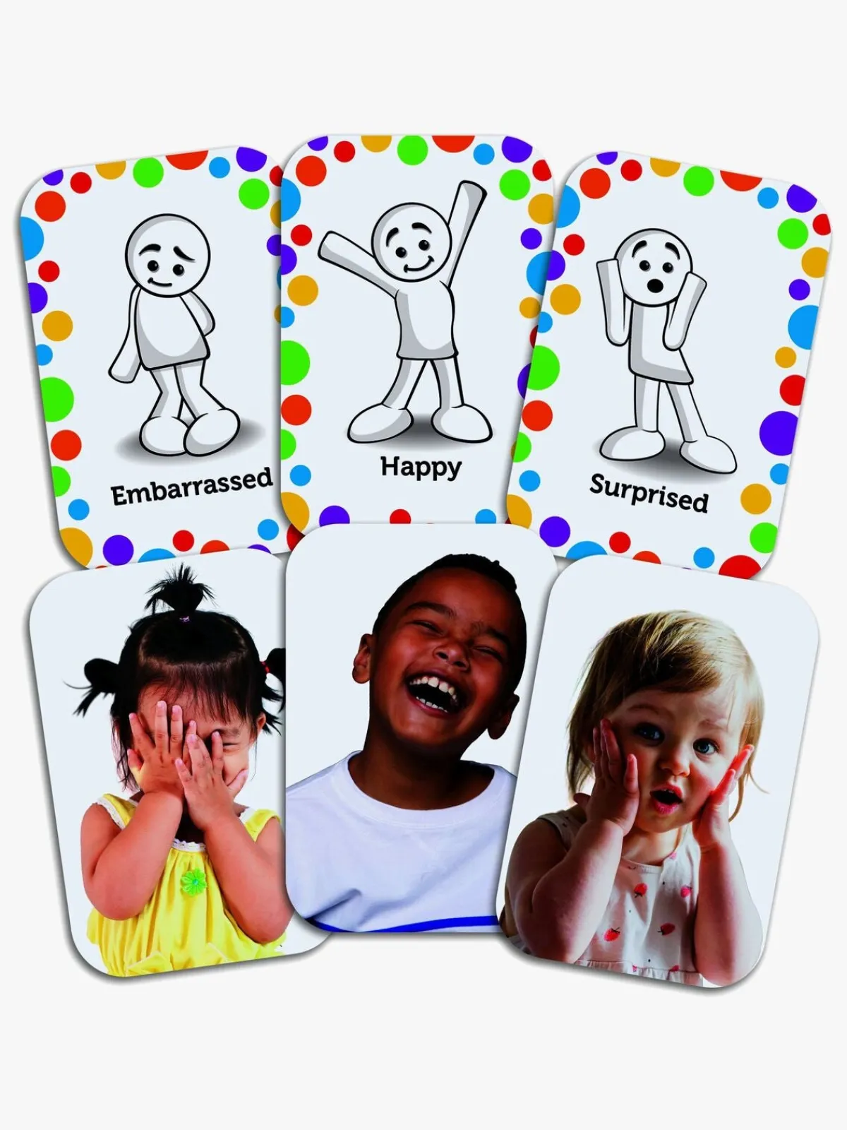 – Indeholder: 6 farverige følelser, 18 aktivitetskort, 36 udtryk.