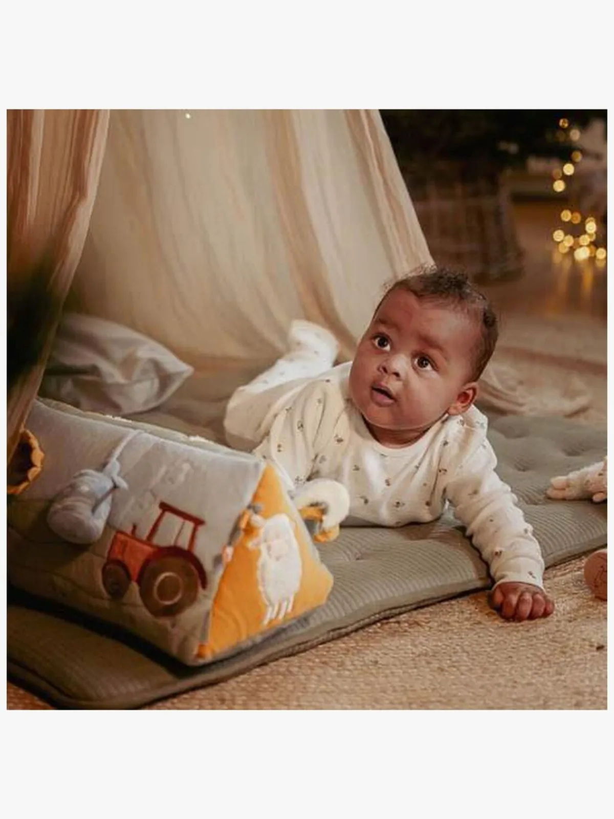 – Sjove farver og et spejl til visuel stimulering.