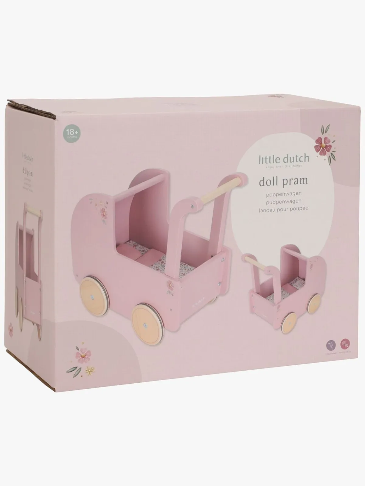 – Indeholder: 1 dukkevogn, 1 pude, 1 tæppe, 1 madras.