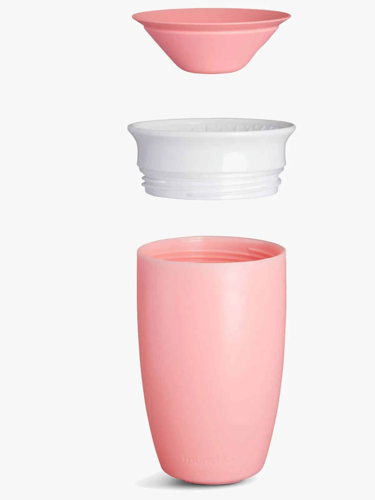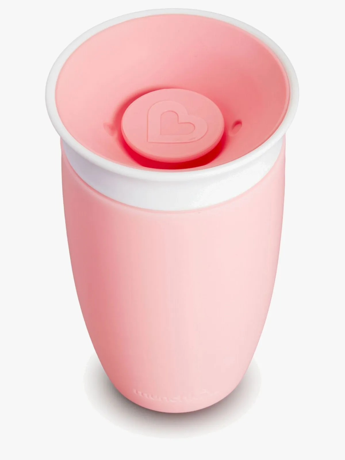 Lyserød Miracle 360, 296 ml tudekop fra Munchkin med et smart, spildsikkert design. Tåler opvaskemaskinen.