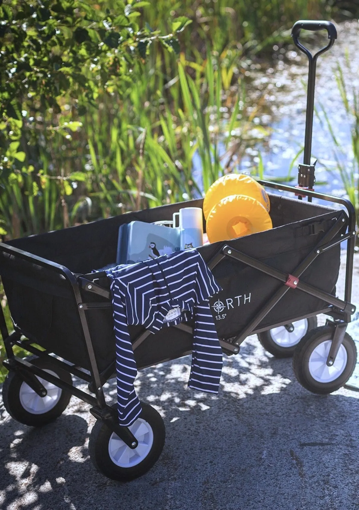 Trækvognens mål, sammenfoldet: L 54 x B 20 x H 76 cm