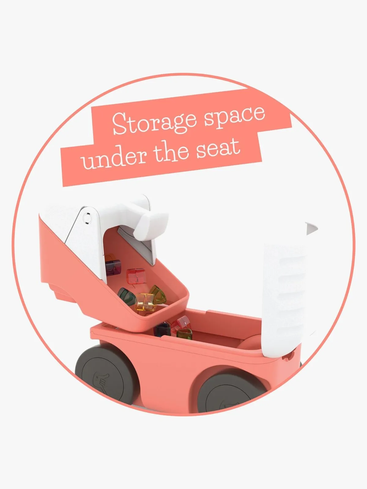 – Opbevaringsplads under sædet.
