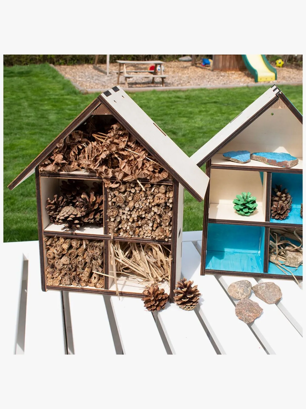 Dette krea sæt fra Playbox består af et sjovt DIY-projekt. Byg dit eget lille træhus med legetøjssættes forskellige dele. Brug det færdige hus som dukkehus, eller hvorfor ikke lave dit helt eget insekthotel?