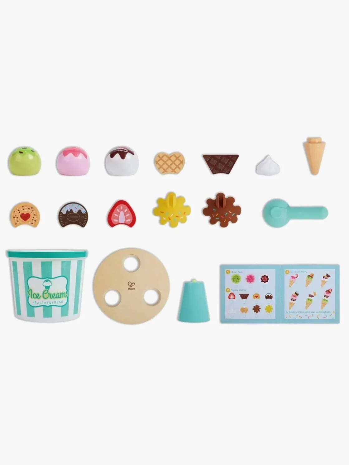 – Indeholder: 1 isspand, 1 isbod, 1 ismenu, 1 isske, 1 issvaffel, 3 issmage, 8 toppings.