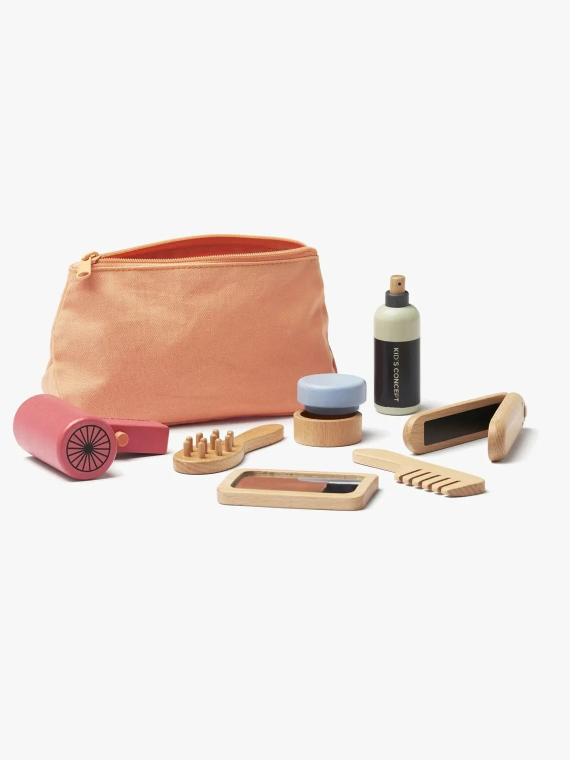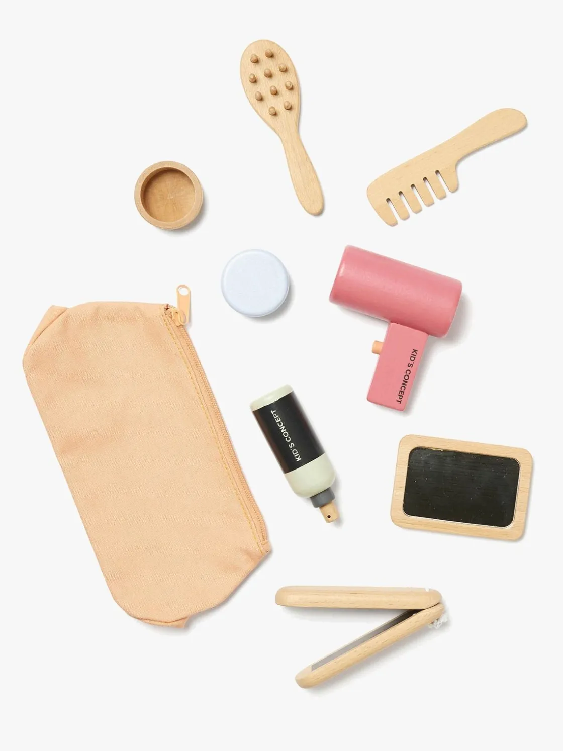 – Indeholder: 1 spejl, 1 hårkam, 1 hårbørste, 1 dåse med låg, 1 fladjern, 1 hårtørrer, 1 sprayflaske.