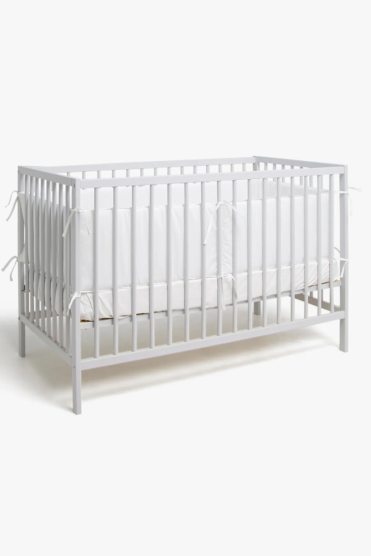 – Holder babyens arme og ben sikkert inde i tremmesengen.