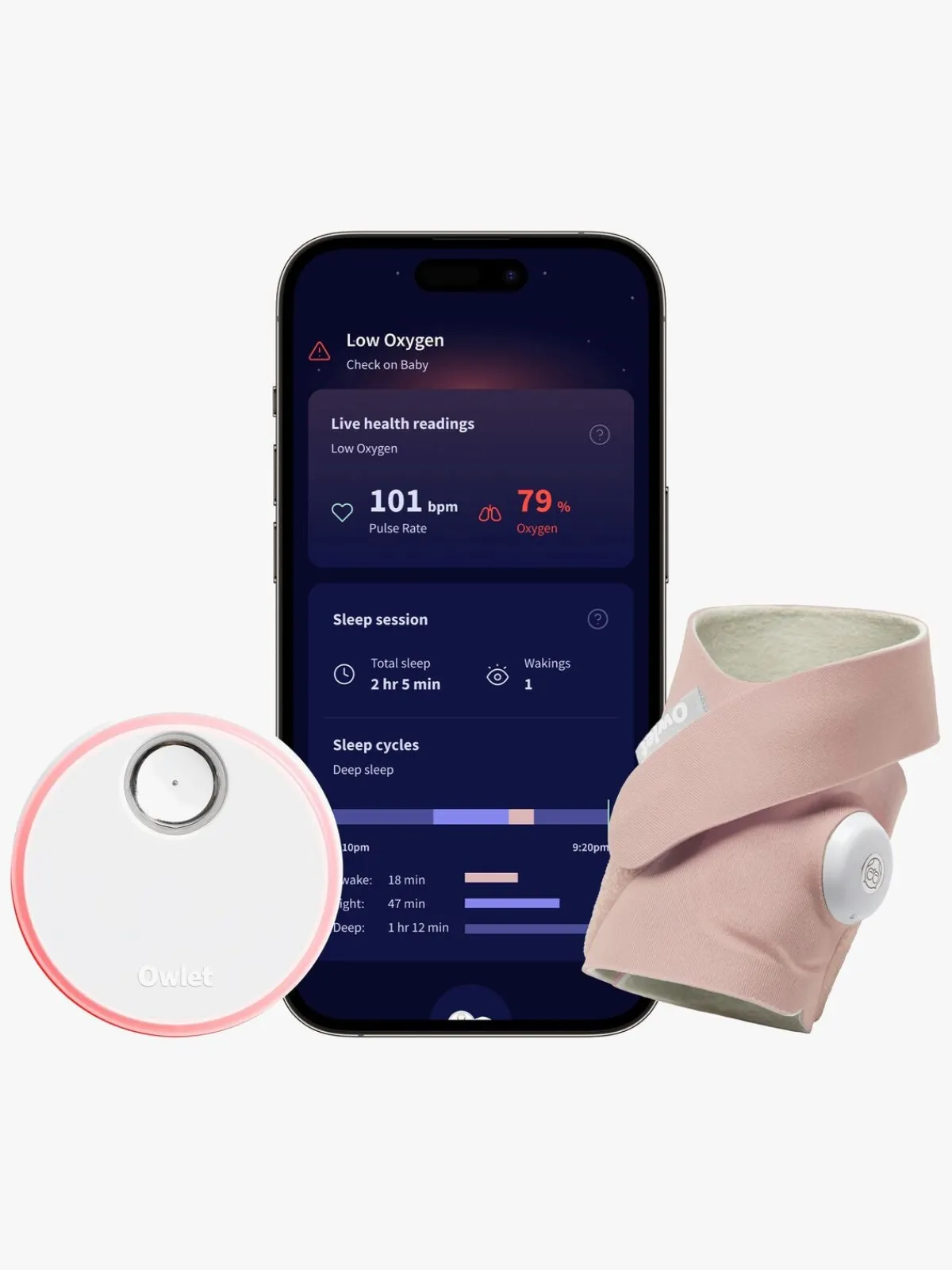 – Kompatibel med Owlet Dream-appen (Sverige og Danmark) og Owlet Care-appen (USA, Canada og Finland). For andre lande, tjek hvilken app, der gælder for hver region.