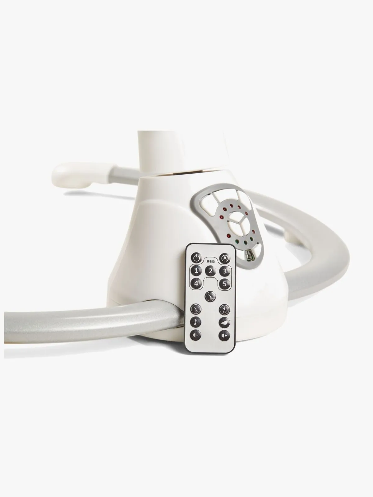 – Fjernbetjening medfølger til justering af gynge- og musikfunktion.