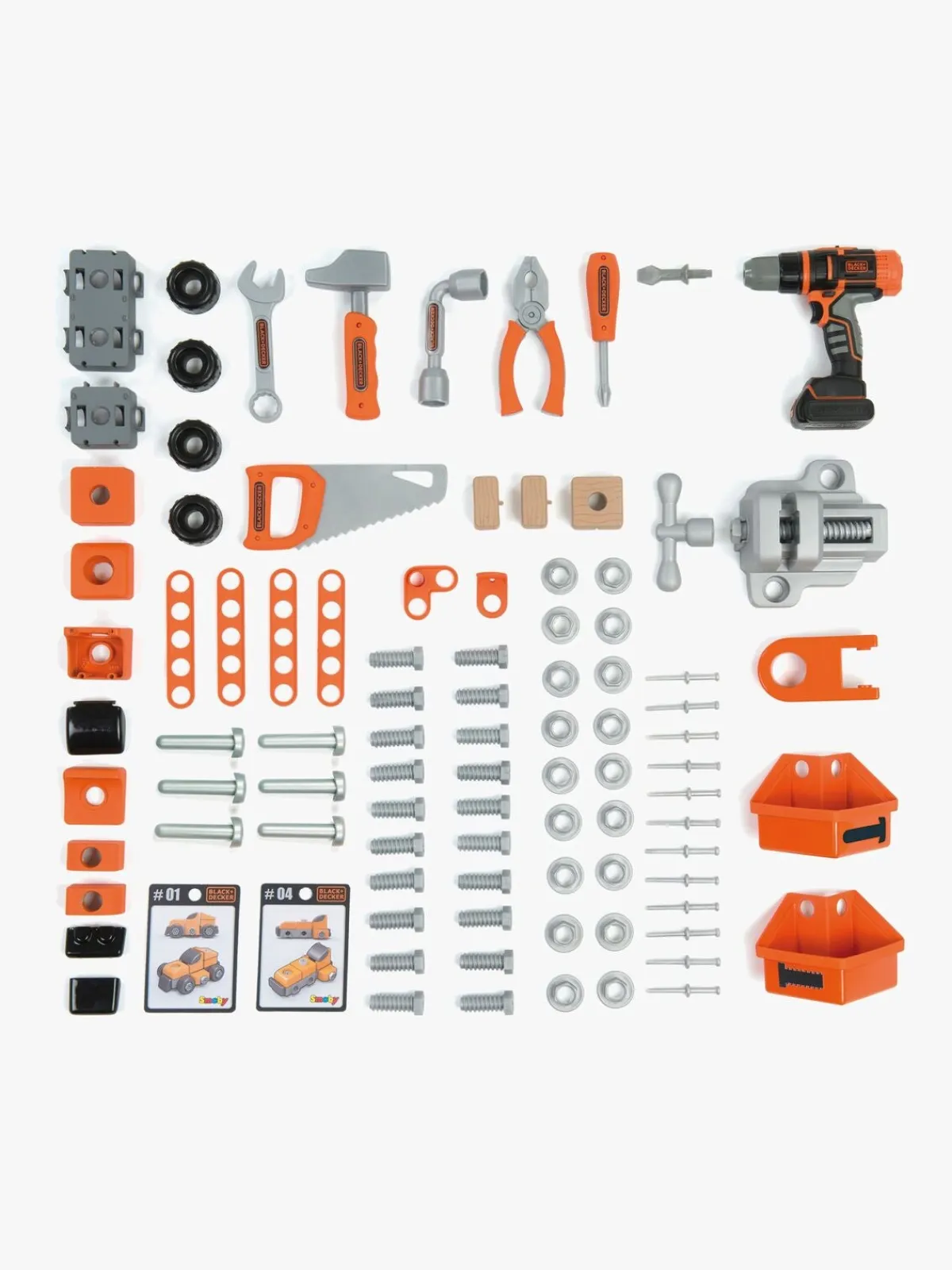 – Indeholder 1 arbejdsbænk, 1 sav, 1 hammer, 1 skruetrækker, 2 skruenøgler, 1 tang, 1 skruestik, 20 skruer, 18 bolte, 6 søm og masser af andet værktøj.