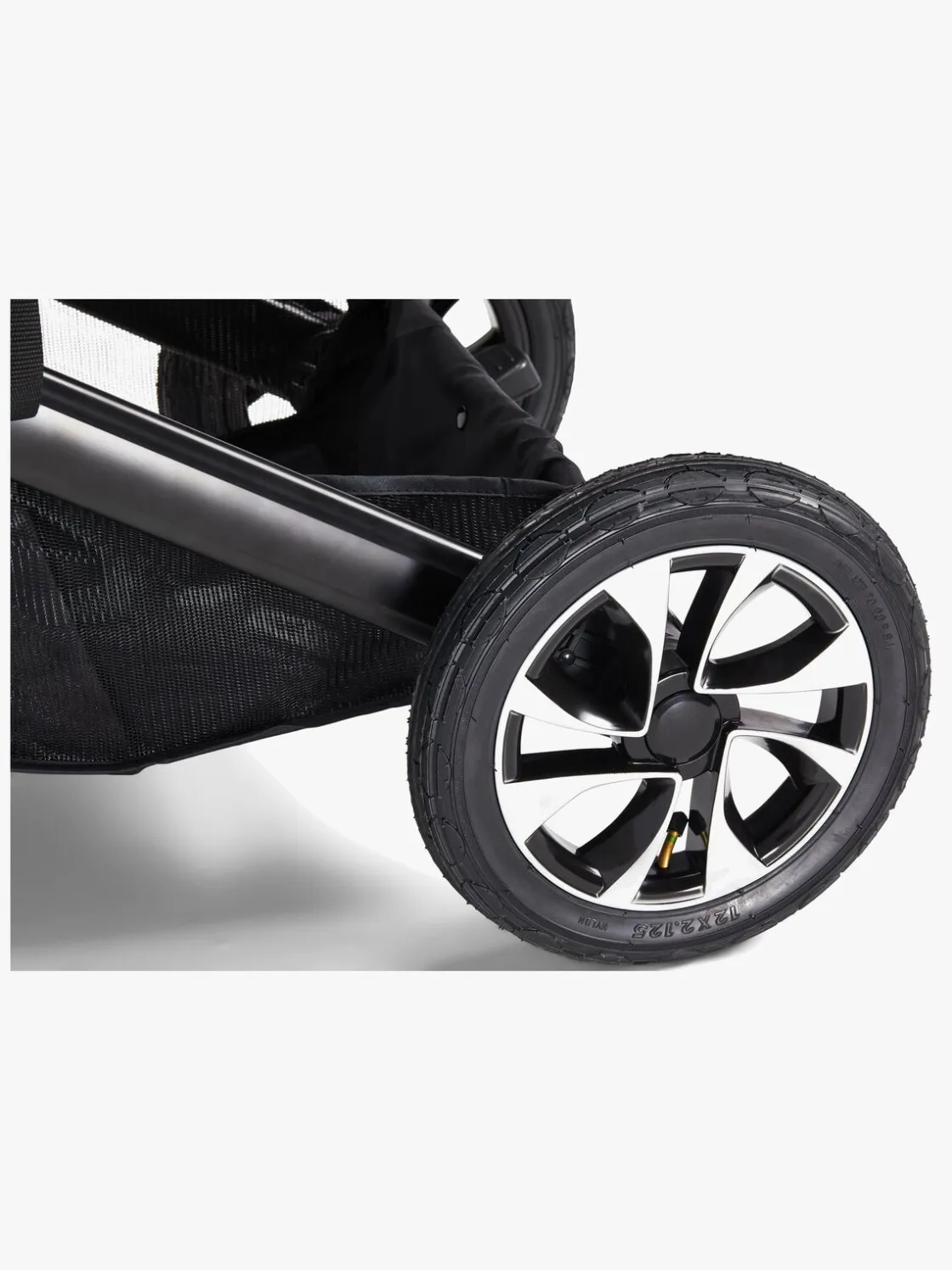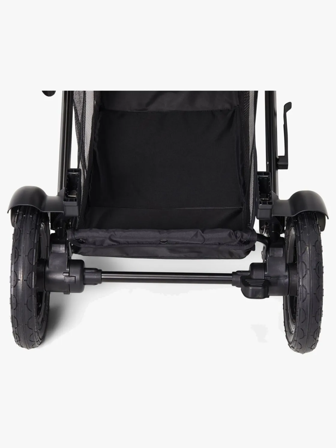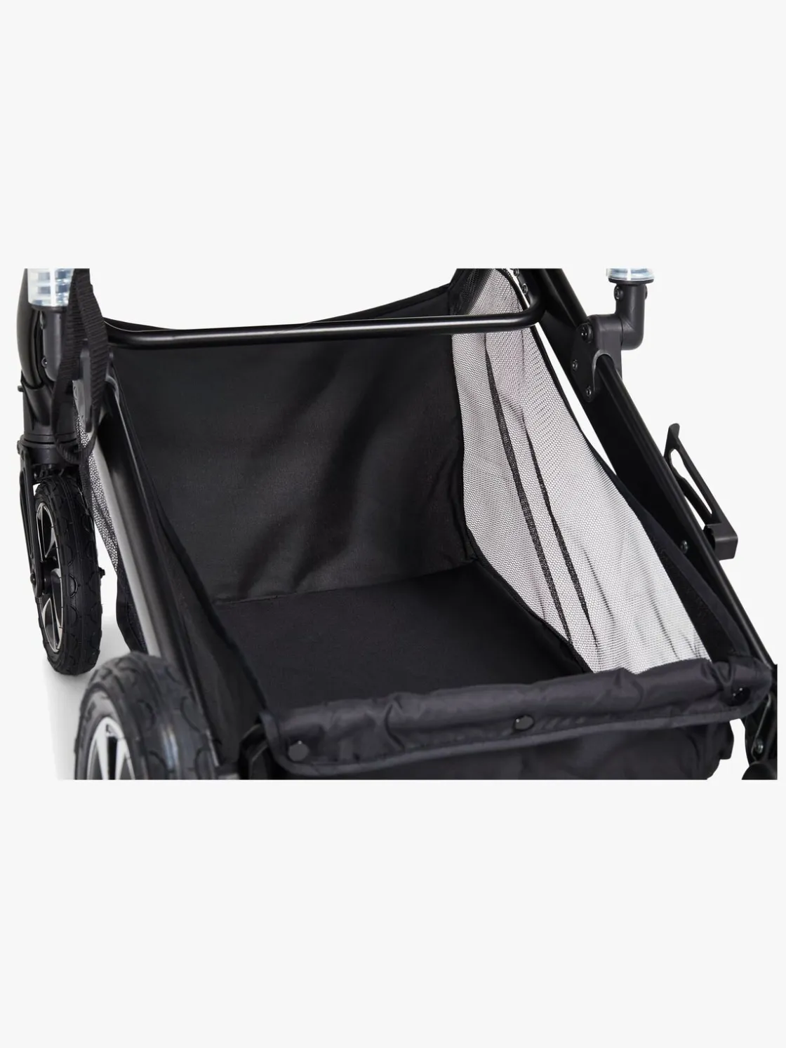Stellet er udstyret med støddæmpende affjedring og store lufthjul bagest for en fleksibel bevægelse på alle slags underlag samt en stor opbevaringskurv underst til alt det, I kan få behov for på gåturen.