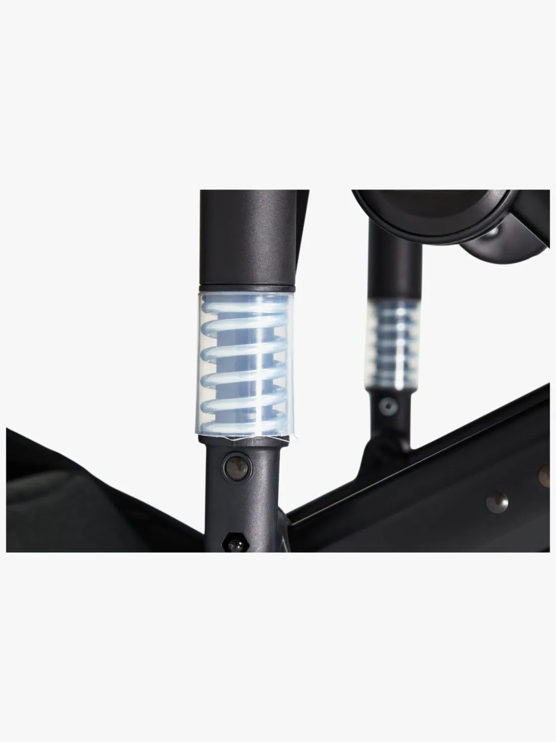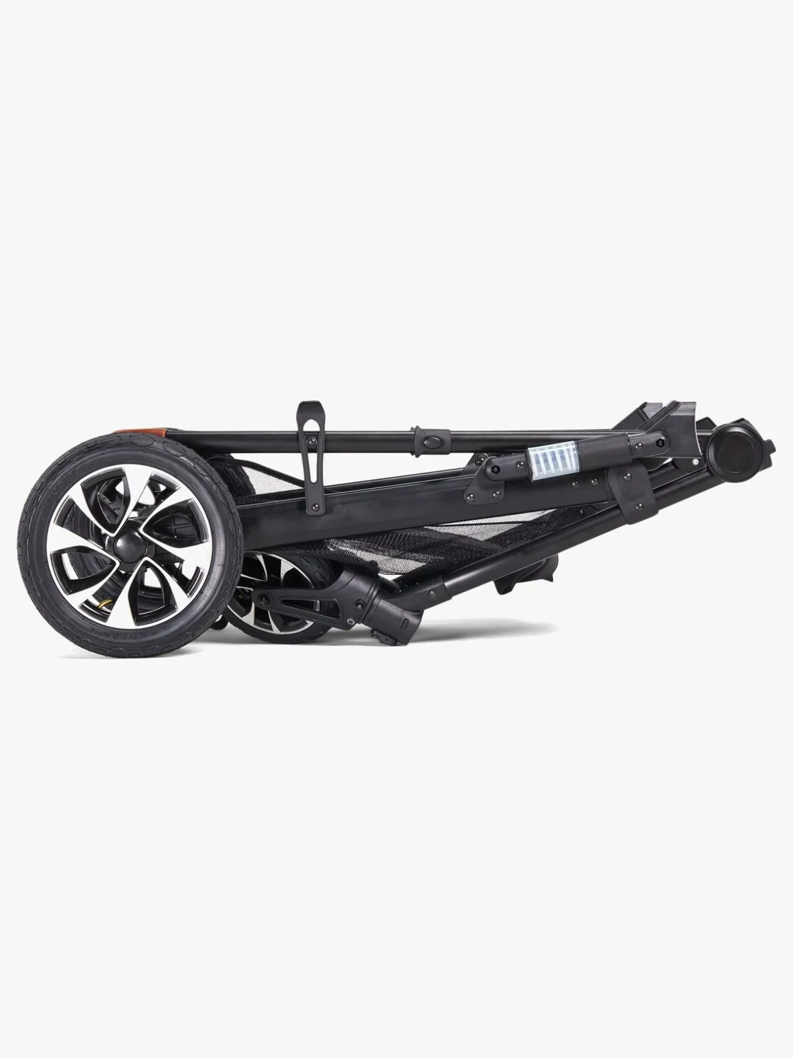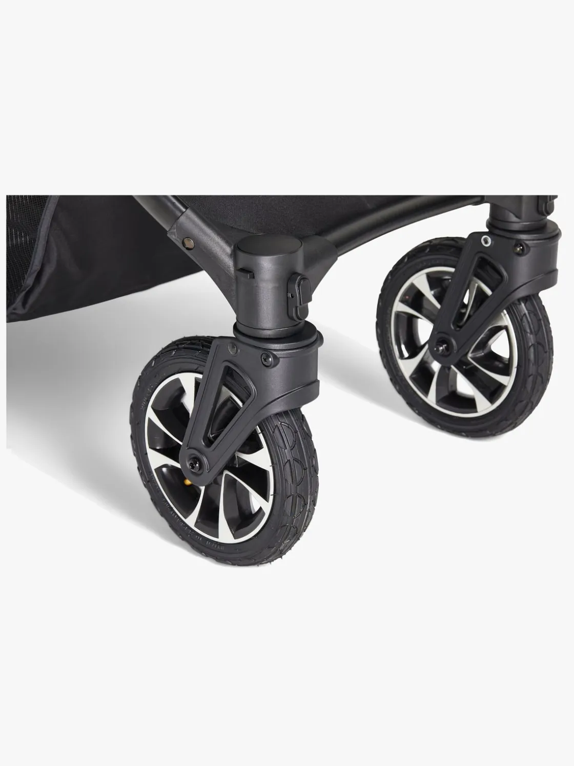 Stellet er udstyret med støddæmpende affjedring og store lufthjul bagest for en fleksibel bevægelse på alle slags underlag samt en stor opbevaringskurv underst til alt det, I kan få behov for på gåturen.