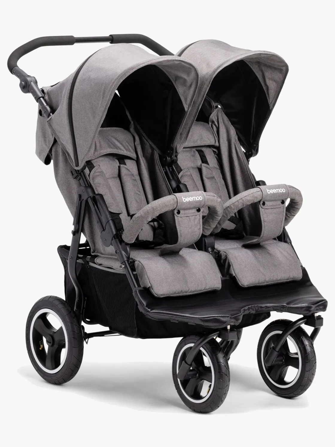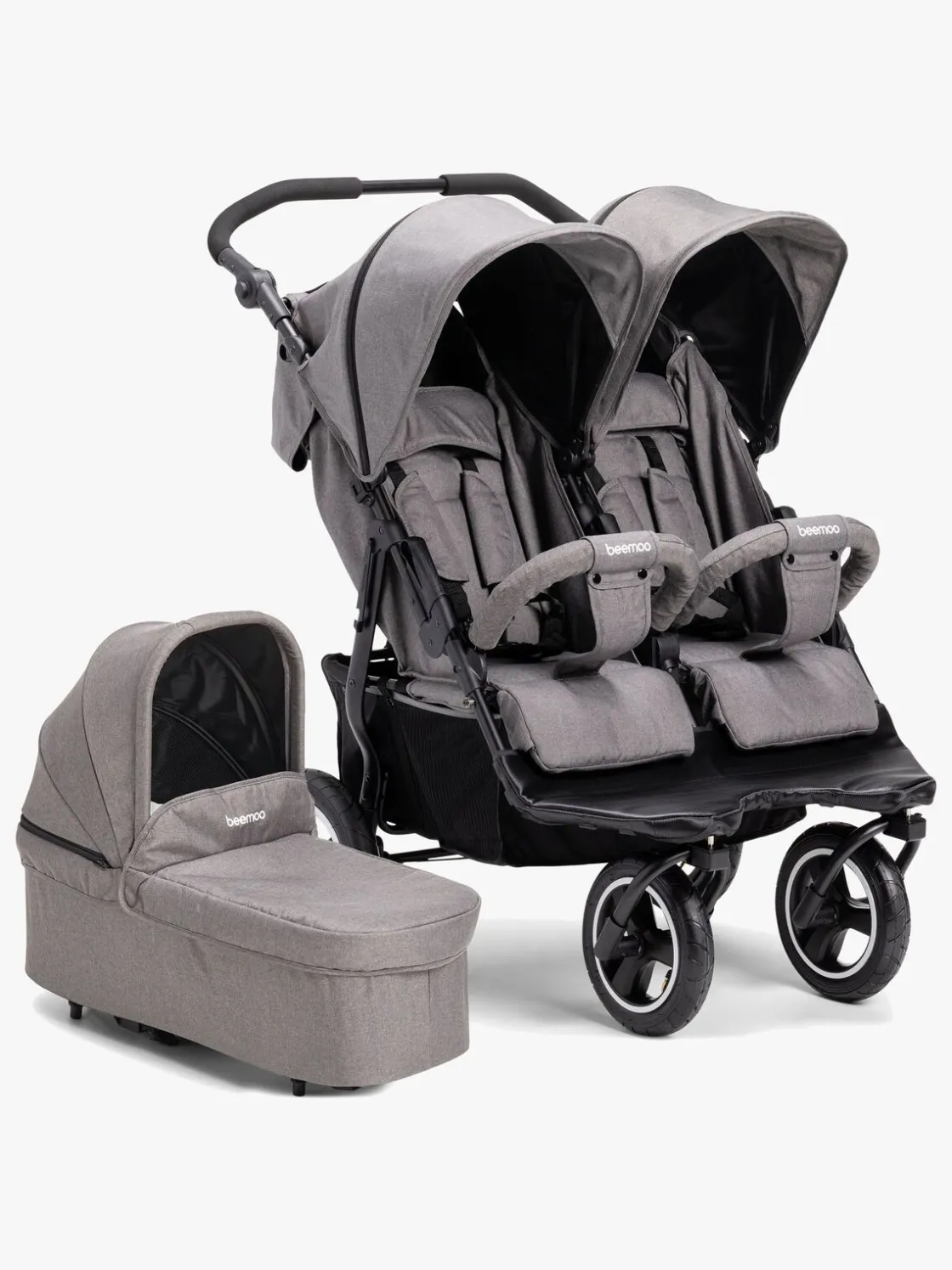 Sæderne har individuelle og trinløse indstillingsmuligheder af ryglænene inklusiv reel hvilestilling. De store kalecher har trinløse indstillings muligheder og beskytter godt mod sol og vind. Skal vognen transporteres, kan den let og enkelt foldes sammen og sikres med transportlåsen. Liggedelen har en dejlig madras og en stor kaleche, der beskytter mod vejr og vind.