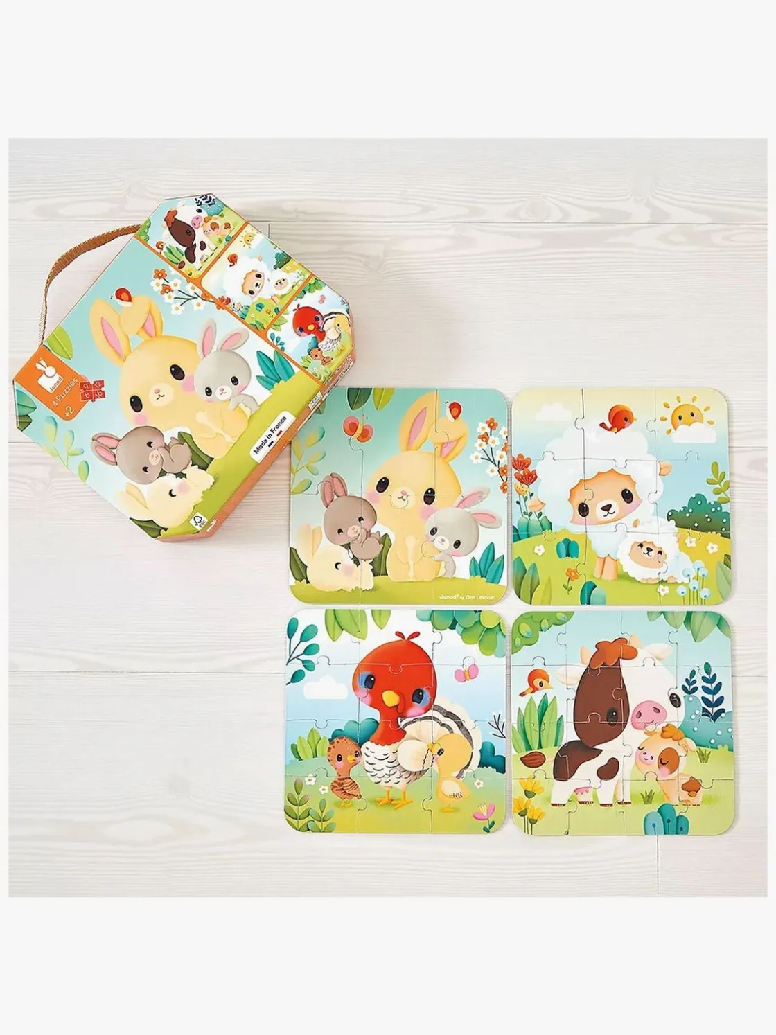 – 4 puslespil, der hhv. består af 6, 9, 12 og 16 brikker.