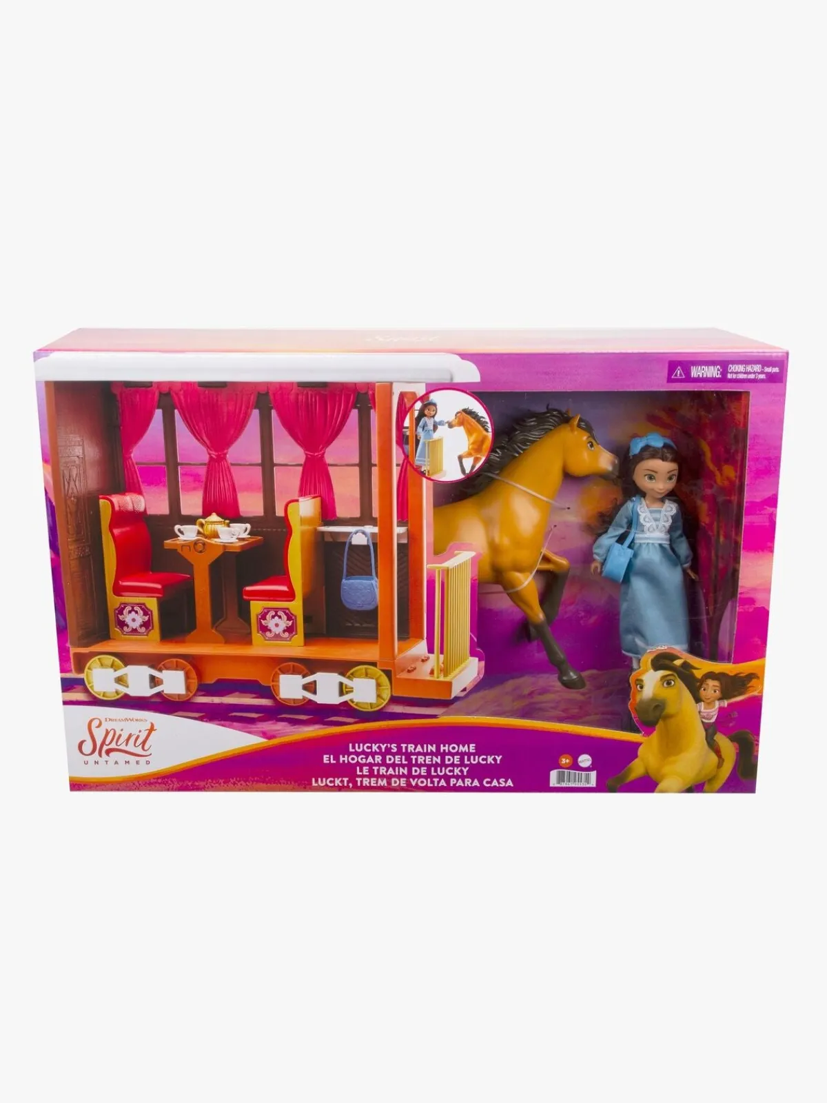 Et sjovt legetøjssæt fra Spirit, der består af dukken, Lucky, hendes søde hest, Spirit, og en smuk togvogn fra Spirit. Følg med Lucky på hendes lange rejse hjem. Perfekt til alle, der er fan af Spirit!