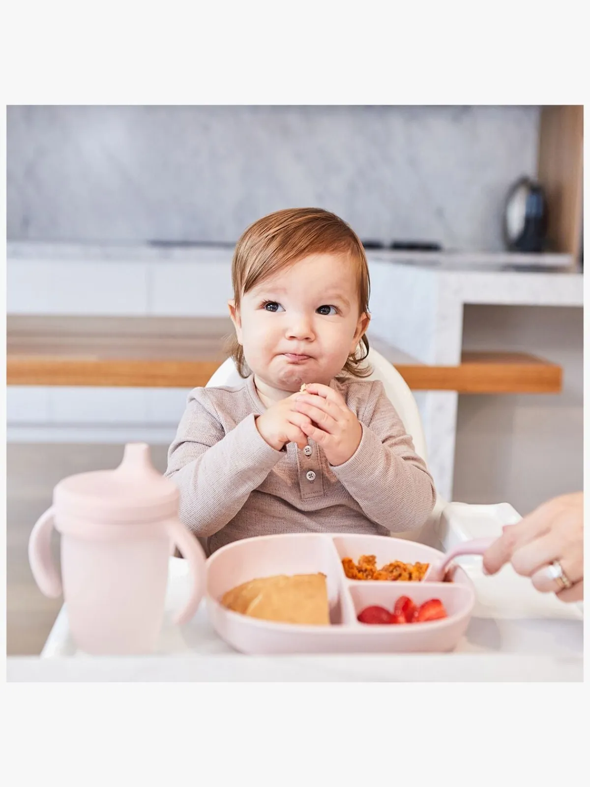 – Afrundede og høje kanter, der gør det nemt at samle maden op.