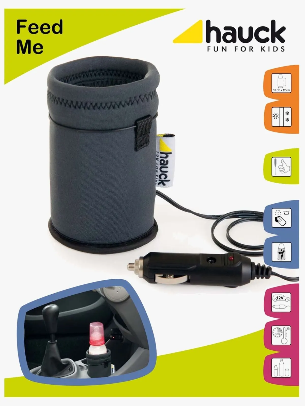 En smart flaskevarmer til bilen, der kopbles i cigarettænderen. Den opvarmer kopper, glas eller flasker. Kompatibel med alle 12 V cigarettænderudtag.