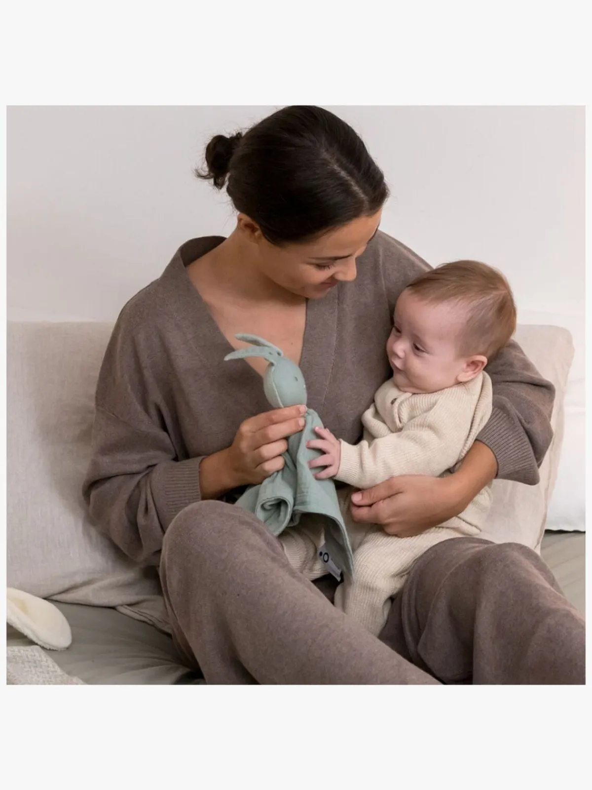 – Indeholder to nusseklude: en til bamsen og en, der kan absorbere forælderens duft og på denne måde give ekstra komfort og tryghed til barnet.
