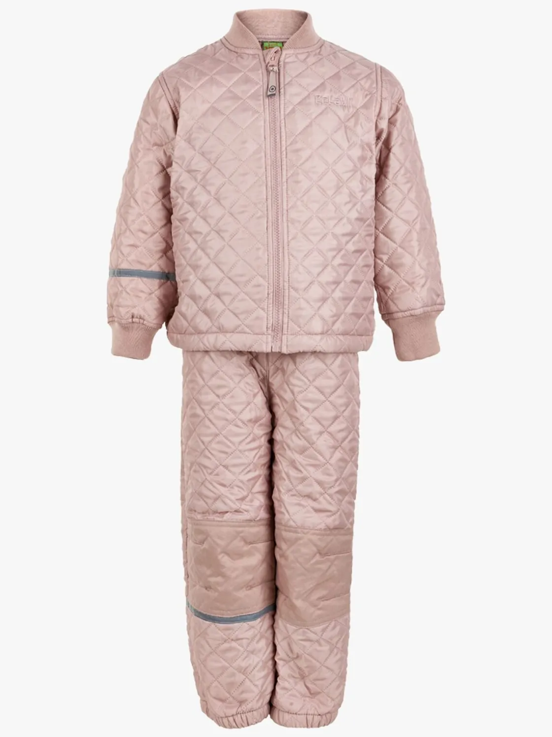 Jakken har elastiske manchetter i ærmerne, så den slutter tæt omkring håndleddene. Bukserne har vand- og snavsafvisende nylonforstærkning på knæ og bagdel. Sættet har flere synlige reflekser.