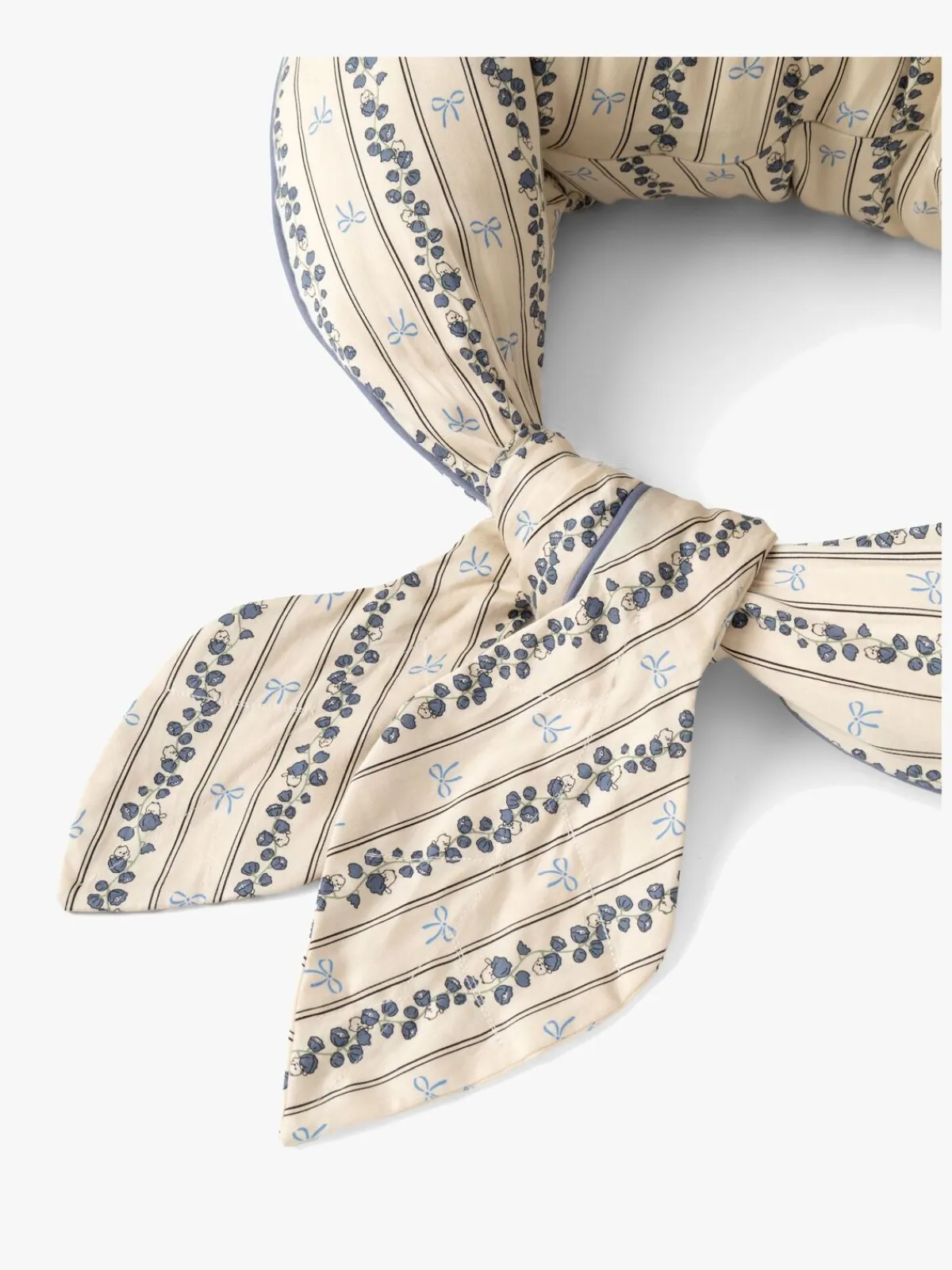 – Ekstra lange ender, der kan bindes sammen for at skabe et hyggeligt sted at sidde eller rundt om livet for optimal amme-komfort.