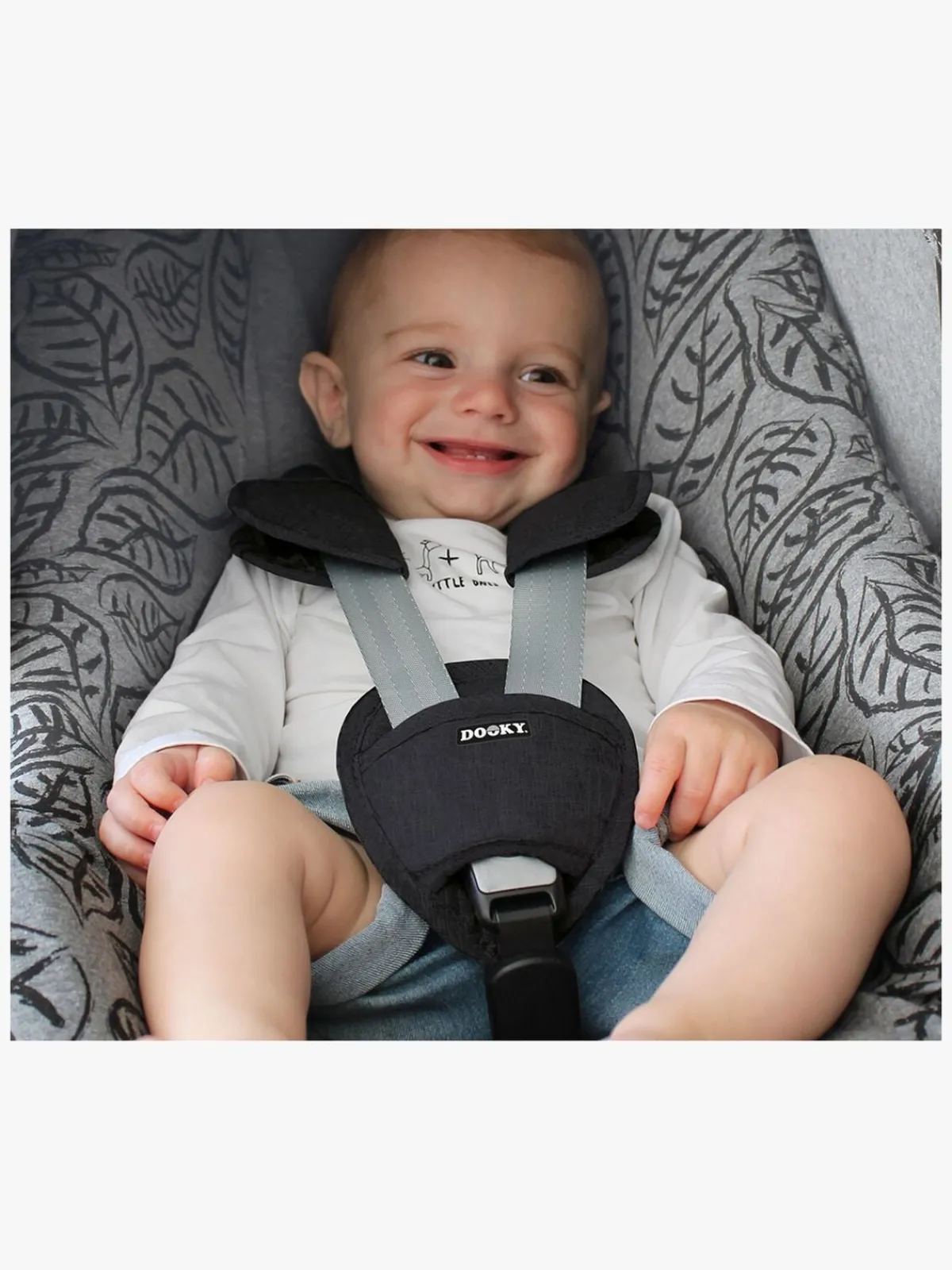 Praktisk og blød selebeskytter fra Dooky. Selebeskytteren passer både til tre- og fempunktssele. Med sit siltrene og justerbare design passer den til de fleste babyautostole på markedet. Beskytter dit barns følsomme hud.