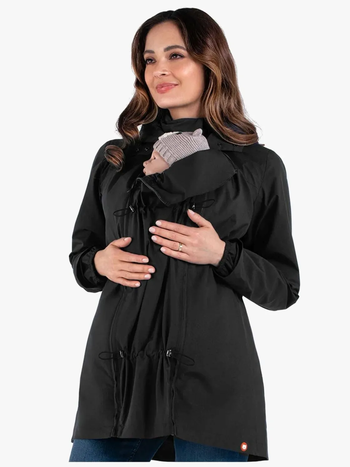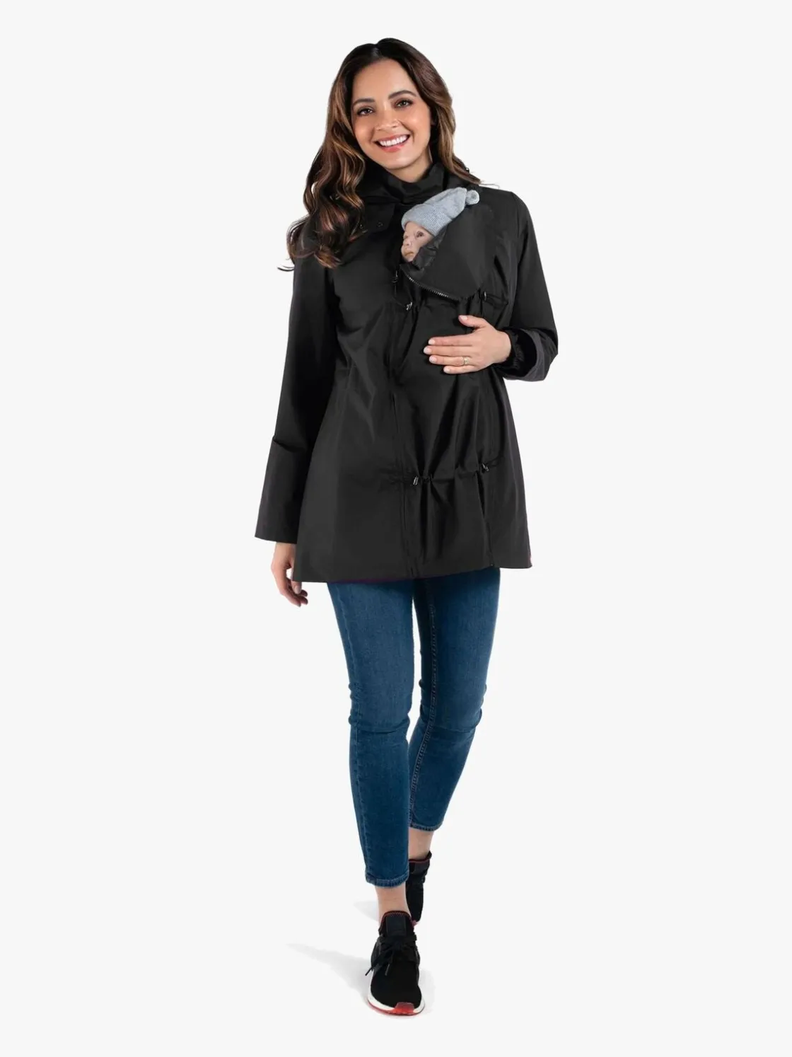 Under graviditeten, bære barn på maven, bære barn på ryggen samt som almindelig jakke. Du kan desuden folde den samme og bære den i en rem over skulderen som en skuldertaske.